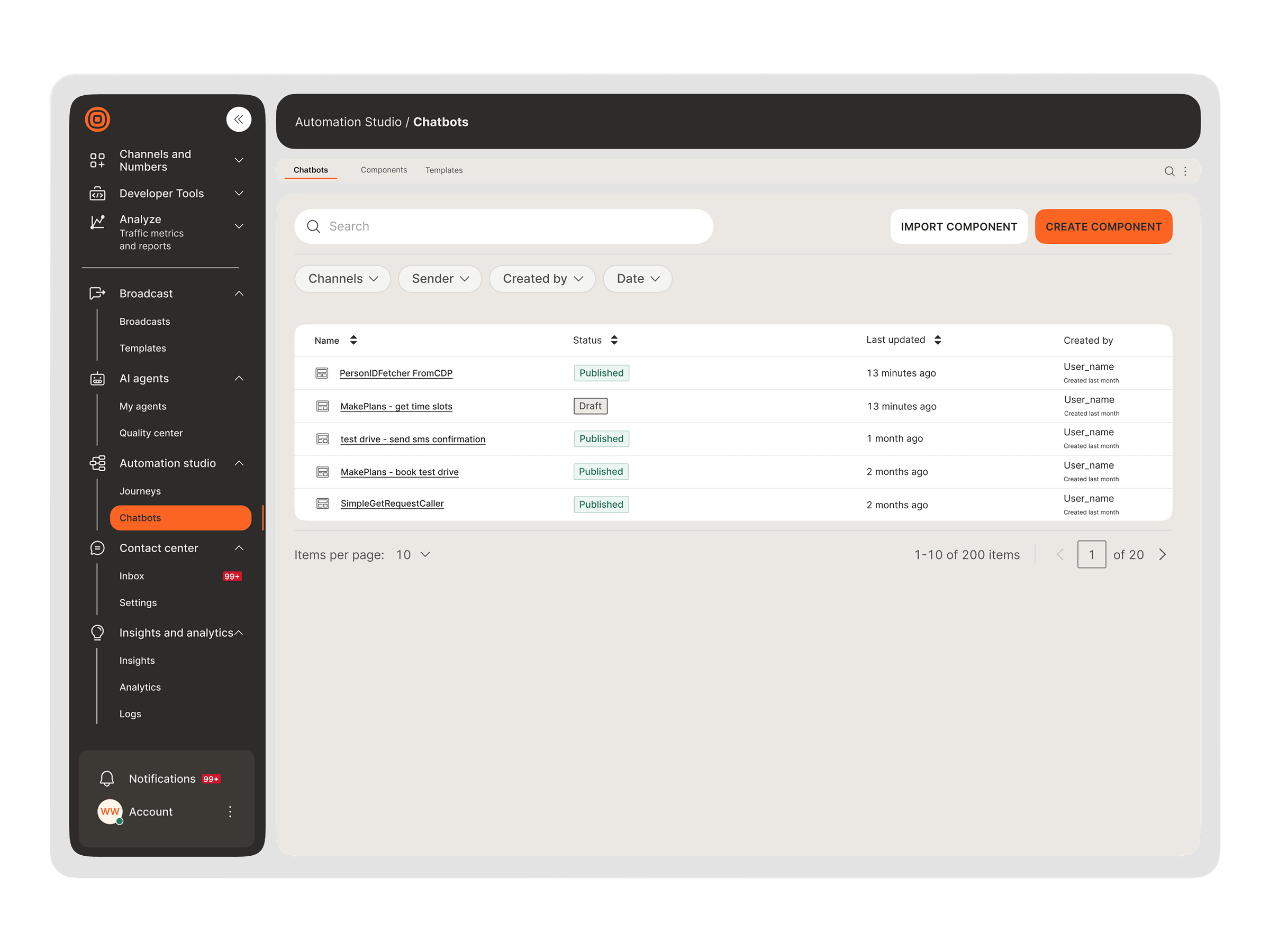 Monitor key metrics in real-time, analyze trends through detailed reports, and build custom dashboards that track what matters to your business. See how chatbots perform within journeys and turn data into actionable improvements – all from one central hub.