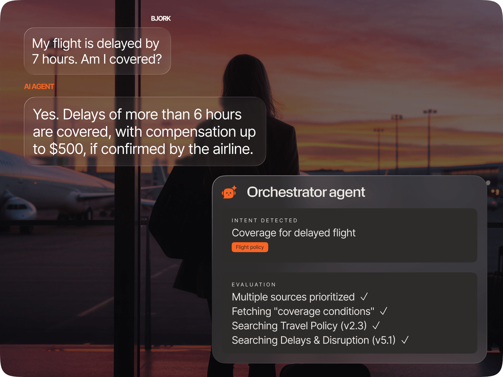 Apply context, memory, and retrieval intelligence to every interaction so AI responds with relevant, documentation-grounded answers. Reduce human escalations by ensuring every response is backed by verified knowledge.