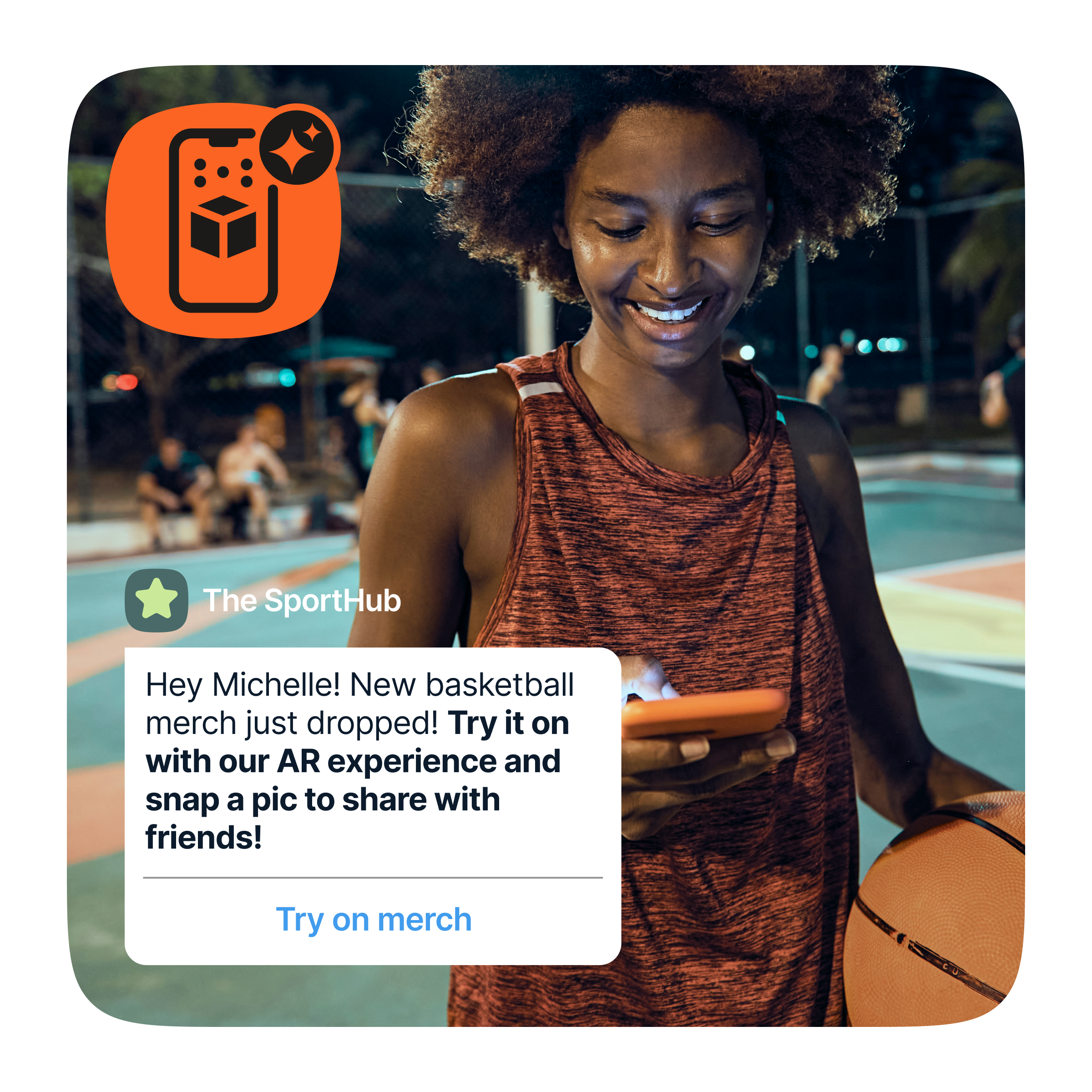 Captivate through chat. Step into interactive brand moments. Capture virtual objects, hunt 3D icons, and explore products through your camera.