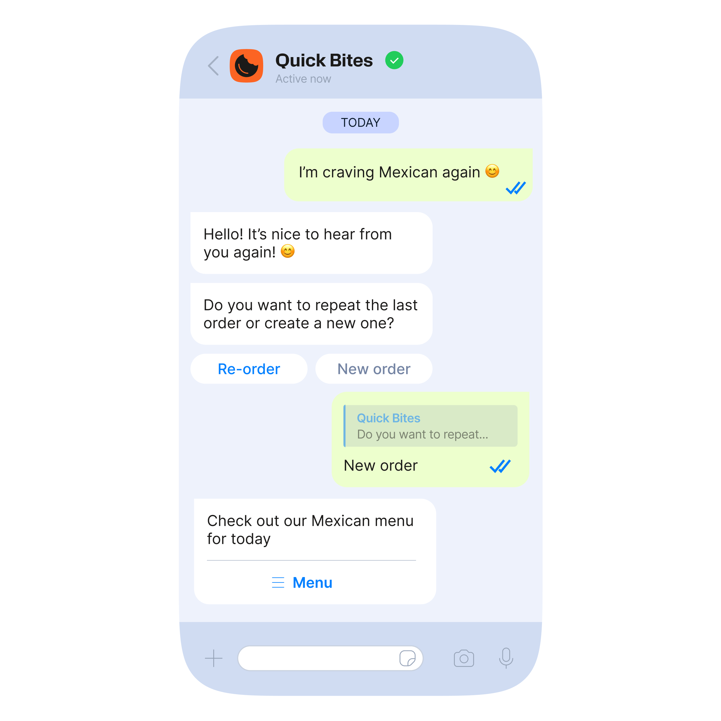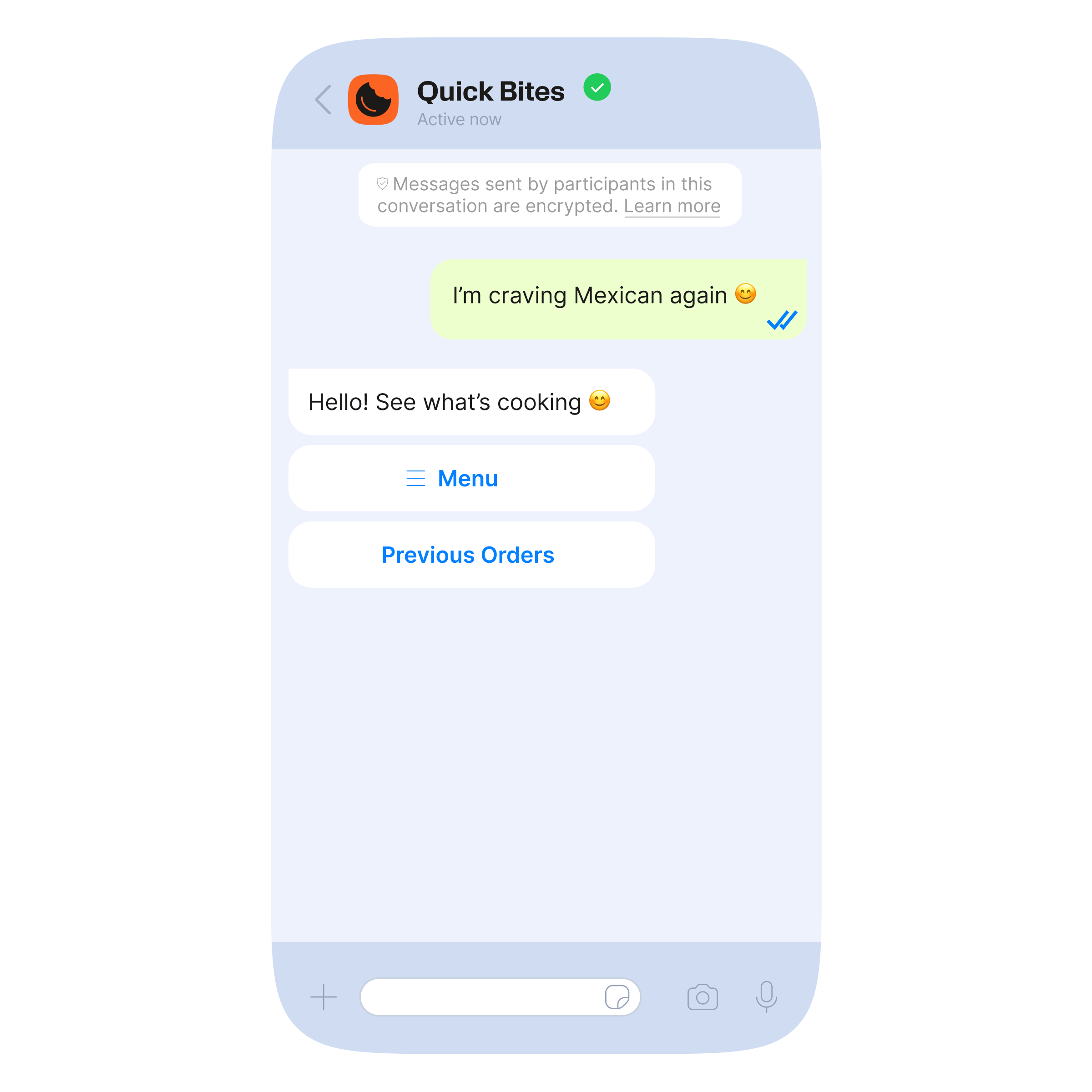 لن يضطر العملاء أبداً إلى مغادرة محادثة WhatsApp لتصفح قائمة الطعام وتقديم طلب للاستلام أو التوصيل