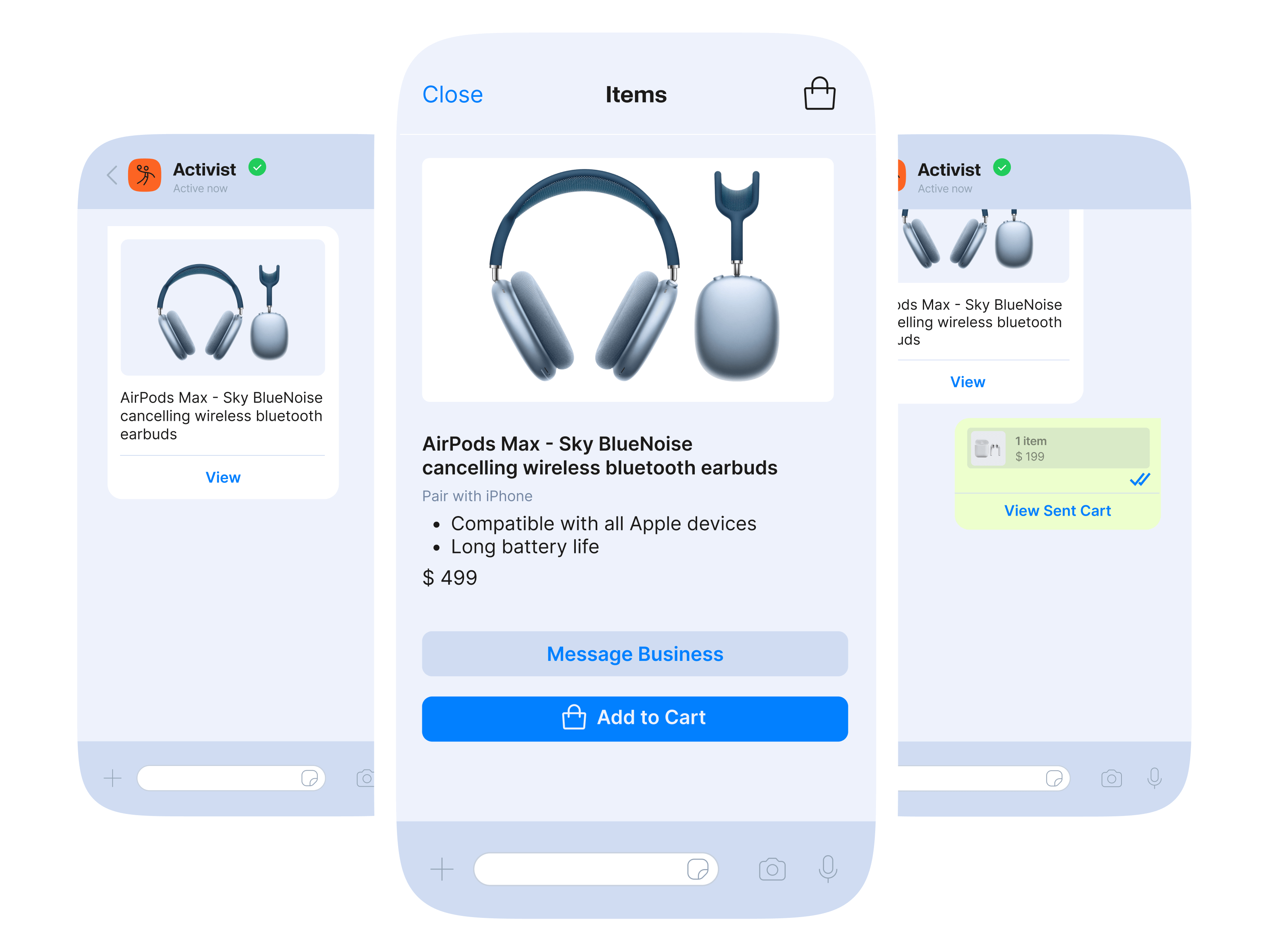 تخلص من متاعب الاضطرار إلى تنزيل تطبيقات متعددة من أجل تقديم الطلبات. قابل عملاءك أينما كانوا، واسمح لهم بتصفح المنتجات وقراءة التفاصيل وتقديم طلب الشراء كل ذلك على قناة واحدة.