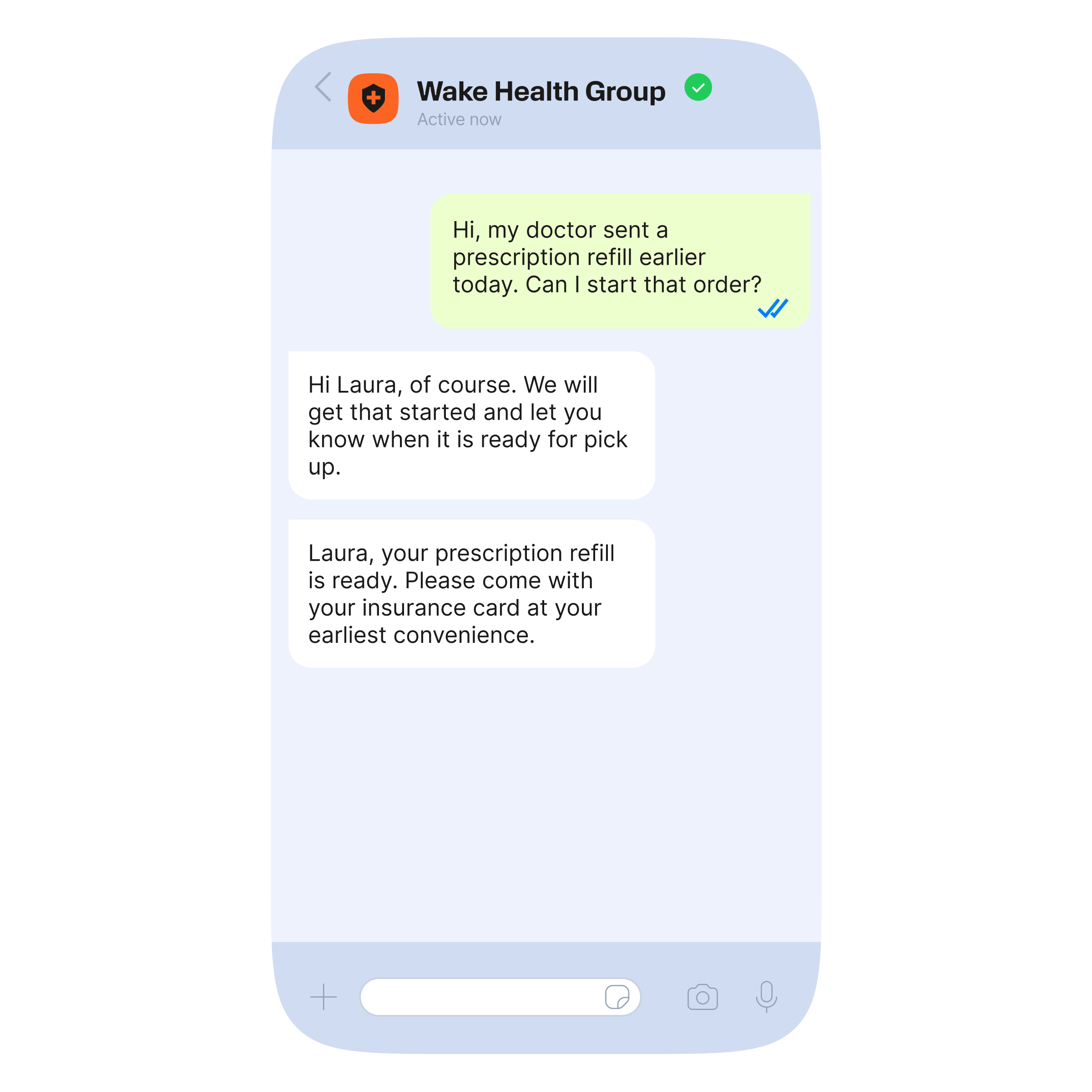 السماح للعملاء بإرسال رسائل إلى الصيدلية المحلية أو المركز الطبي عبر واتساب