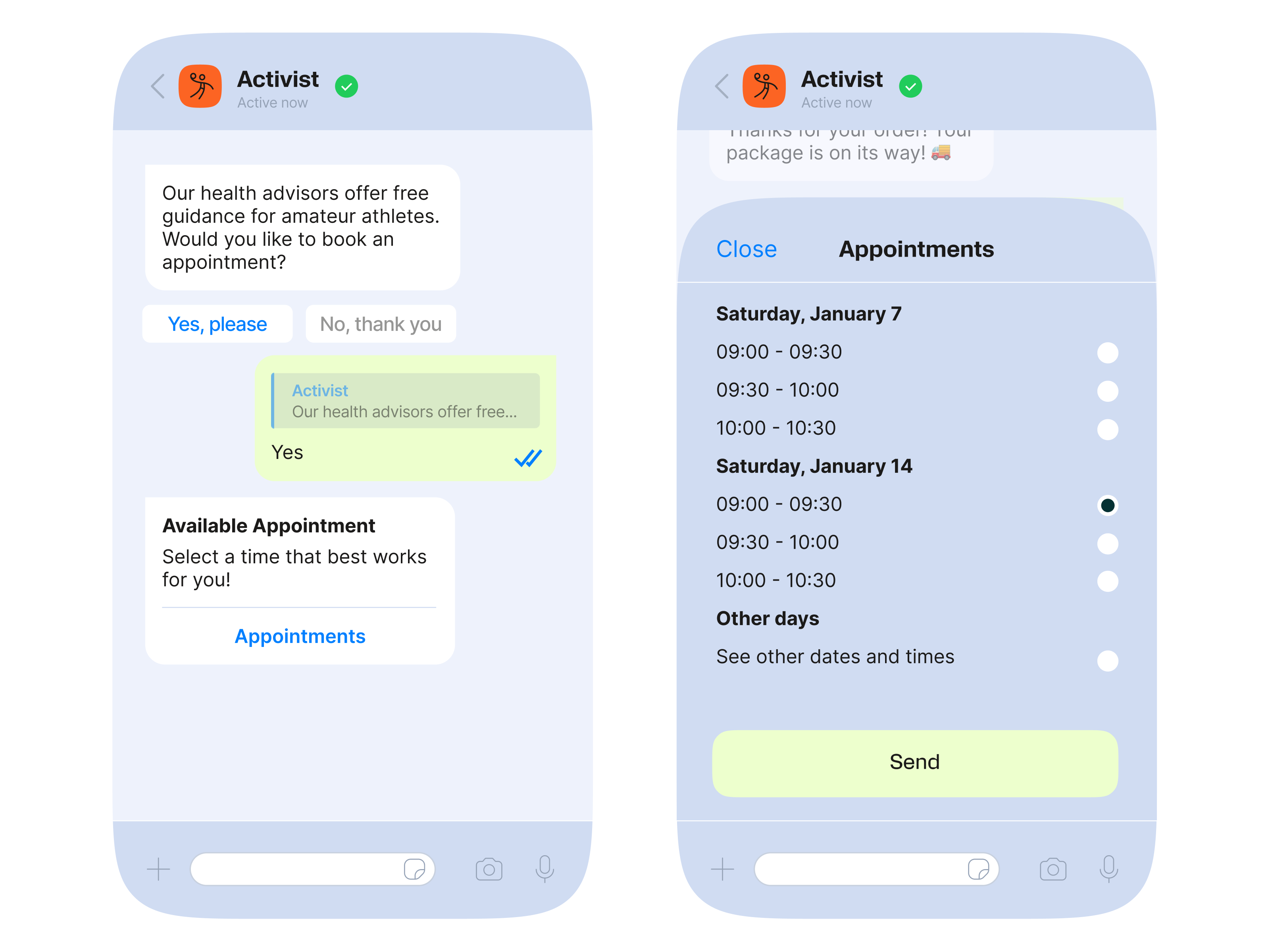 يمكن للشركات إرسال رسائل المعاملات عبر واتساب لإبلاغ العملاء وتنبيههم وتحديثهم بأي شيء يتعلق بحساباتهم أو مشترياتهم. تُعد هذه الرسائل مثالية لإبقاء العملاء على اطلاع على أي تحديثات عاجلة أو قيّمة يجب أن يعرفوها.
