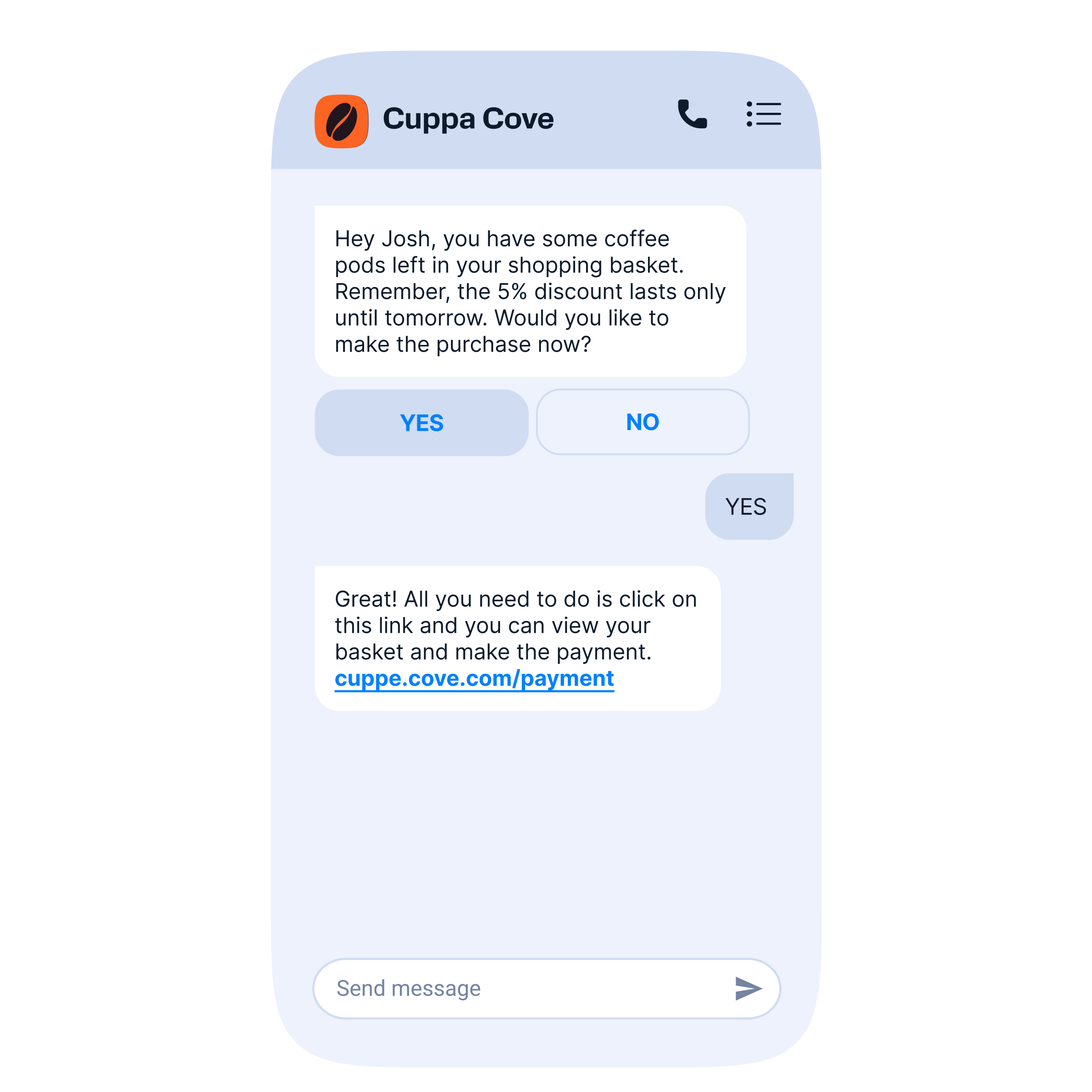تأكد من إبقاء عملائك على اطلاع دائم من خلال إرسال رسائل المعاملات على قناة يستخدمونها ويثقون بها بشكل متكرر. قم ببناء الثقة حول علامتك التجارية من خلال إرسال النوع الصحيح من رسائل المعاملات إلى العملاء المناسبين بالضبط عندما يحتاجون إليها.