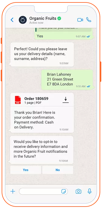- Use rich UI elements like buttons, lists, product catalogs, and media to guide customers and reduce drop-off.