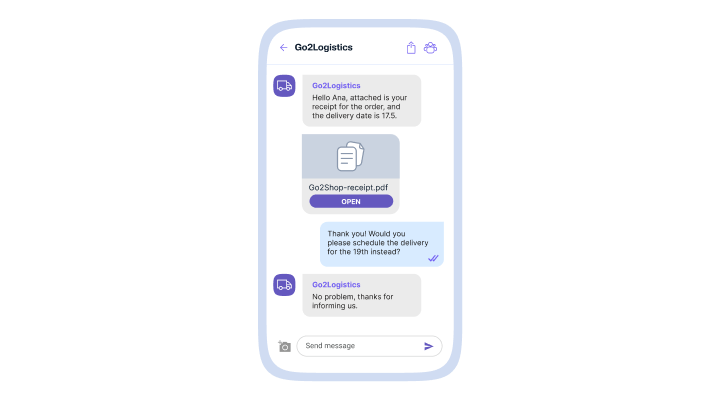 Unlike personal Viber chats, business messages come from a verified sender and support: