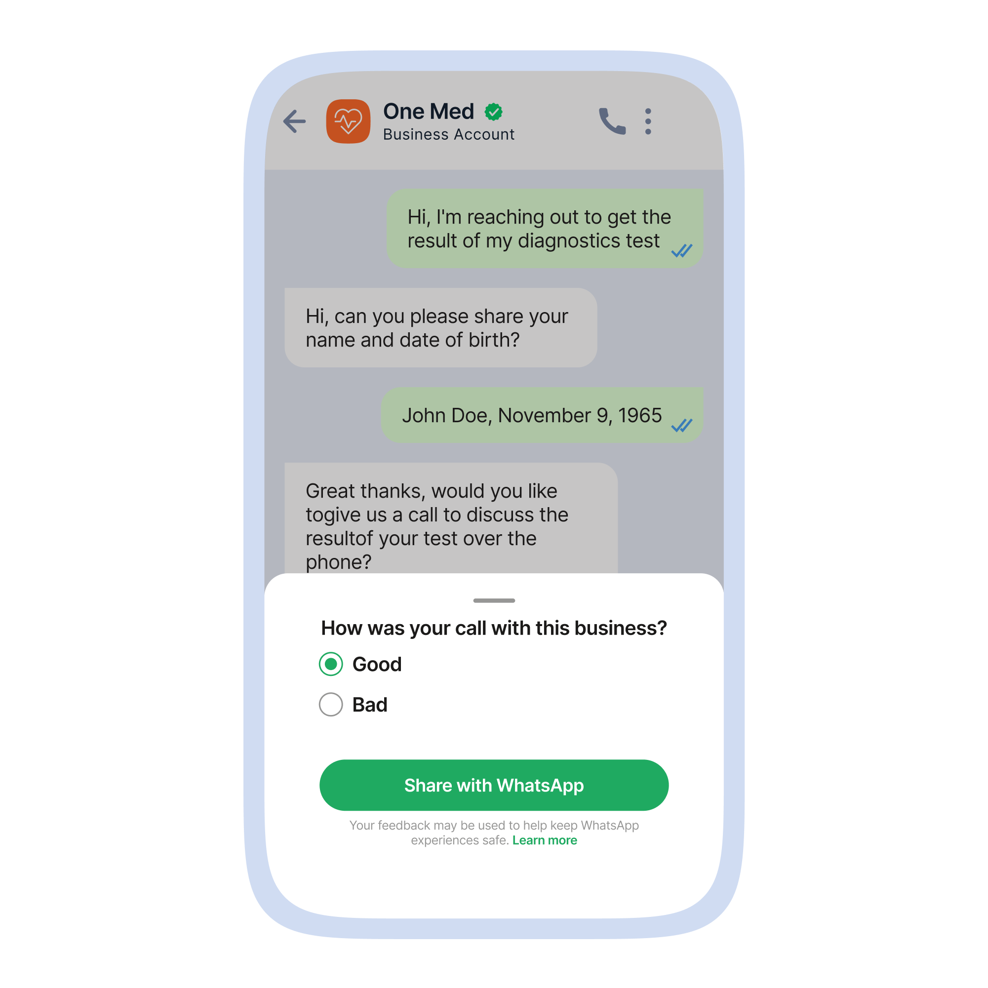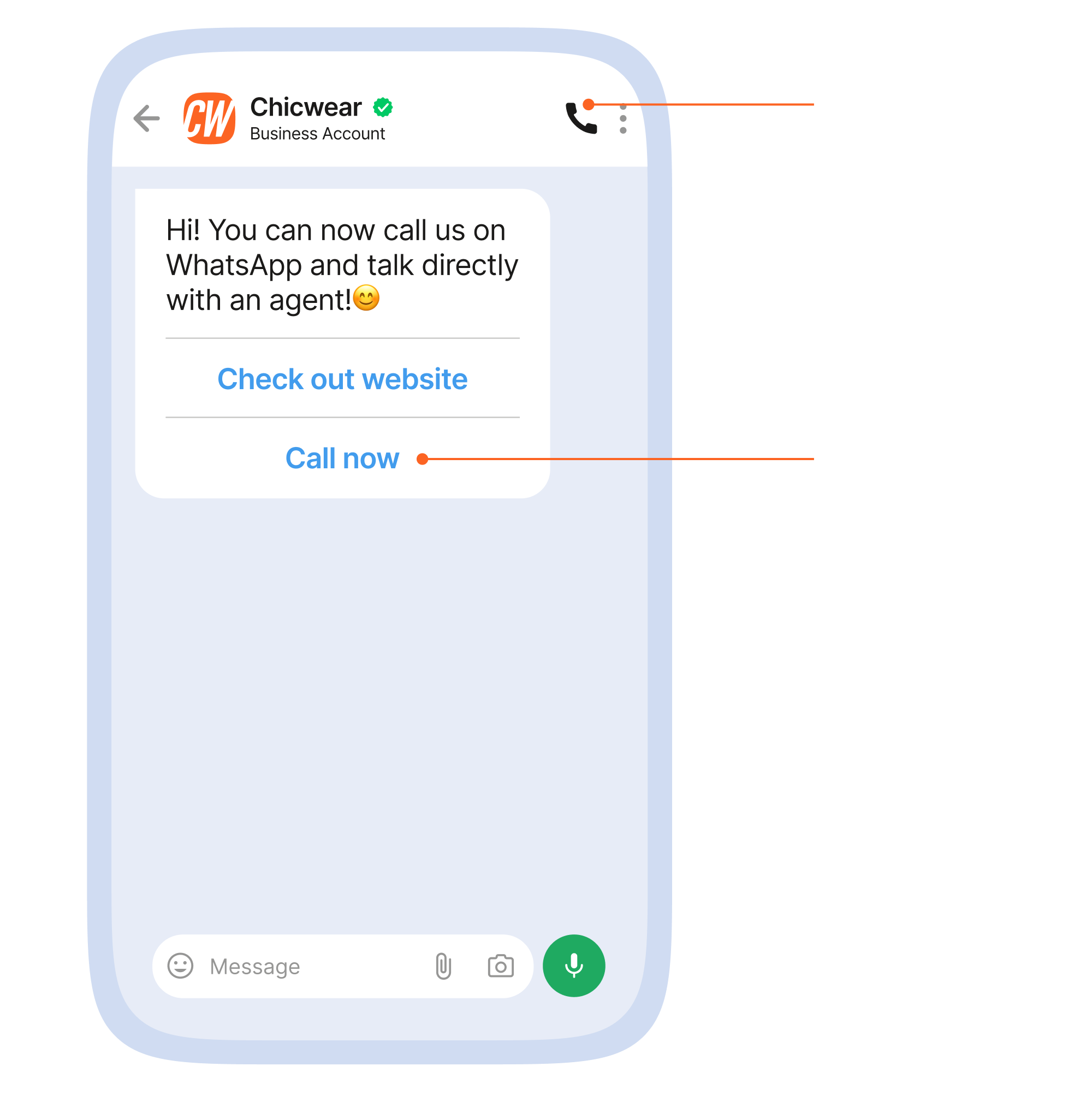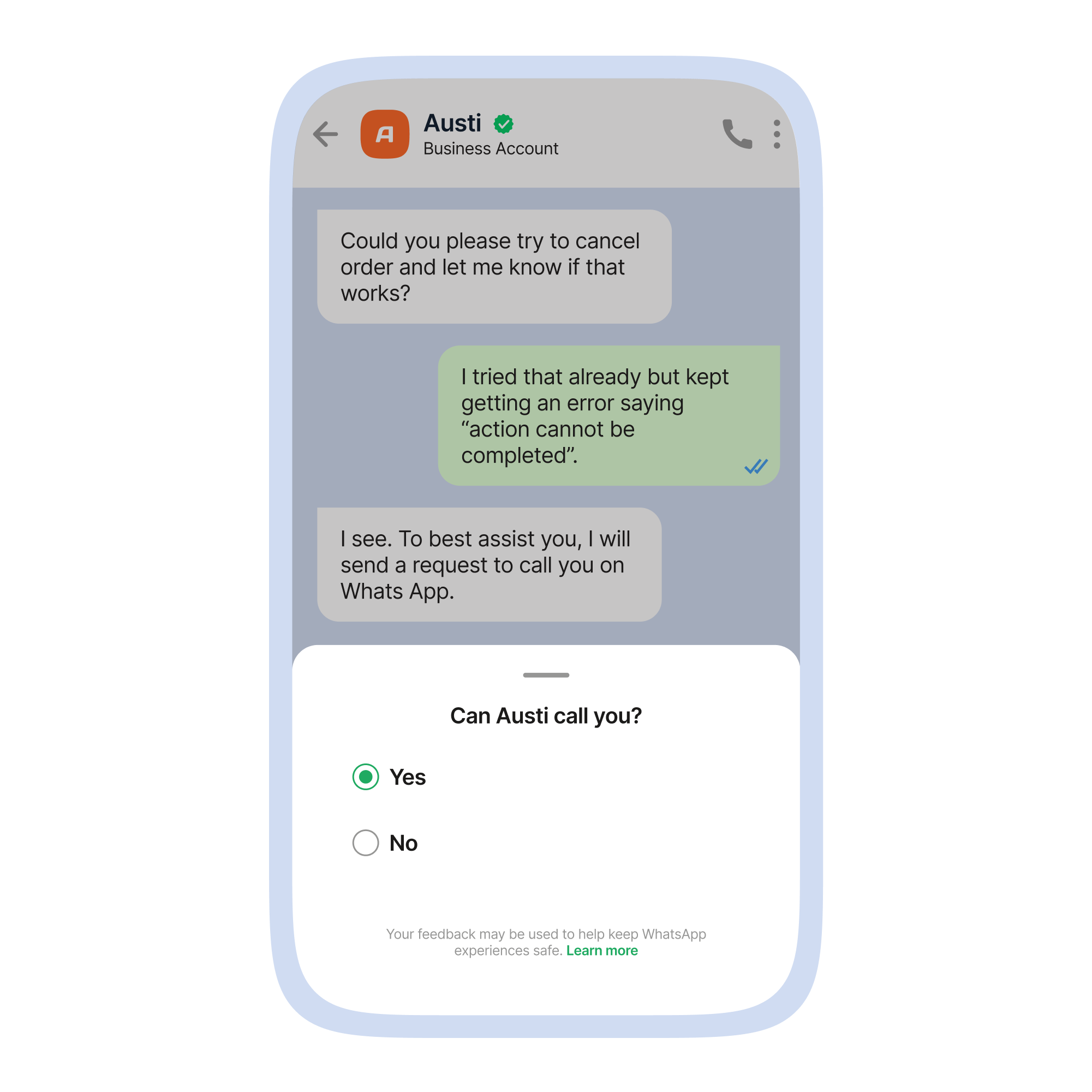 Let customers call you with just one tap from within WhatsApp – making support fast, easy, and frictionless.