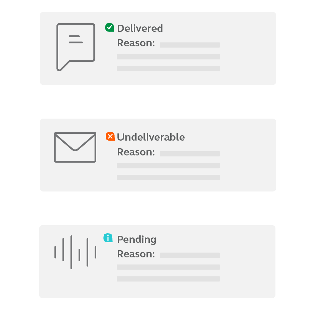 - Status (delivered, pending, rejected, undeliverable, expired)