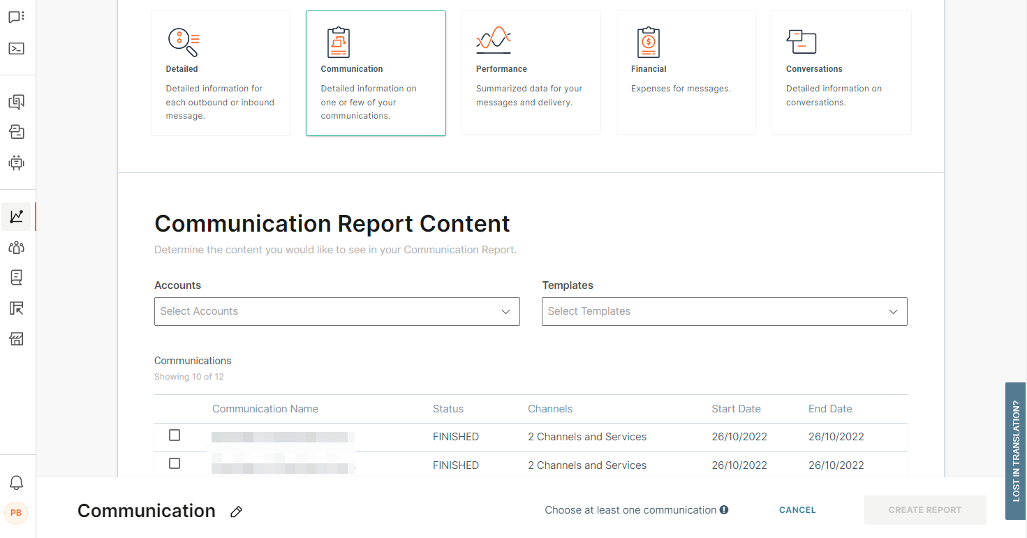 In the Report type section, select Communication.