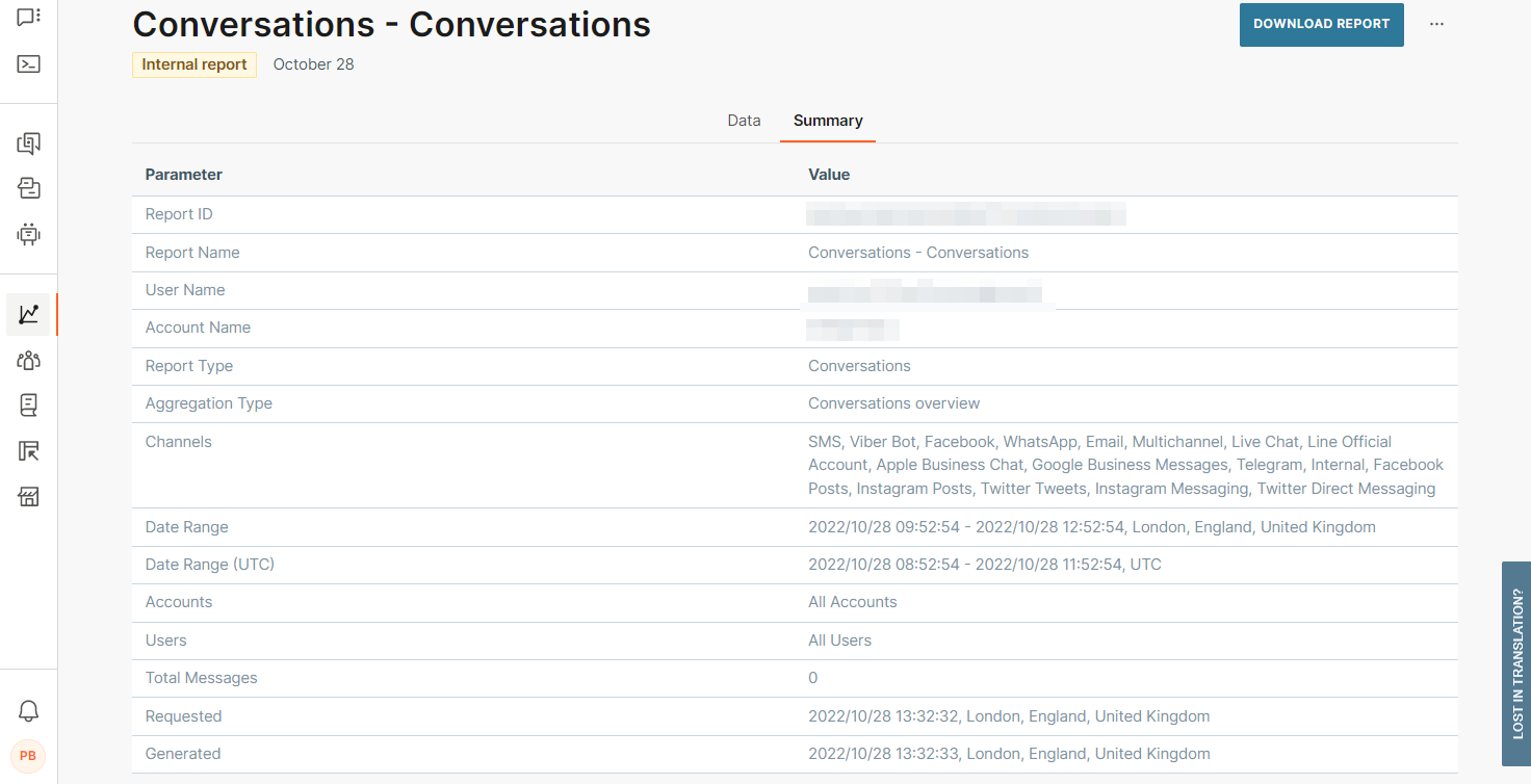 Conversations report