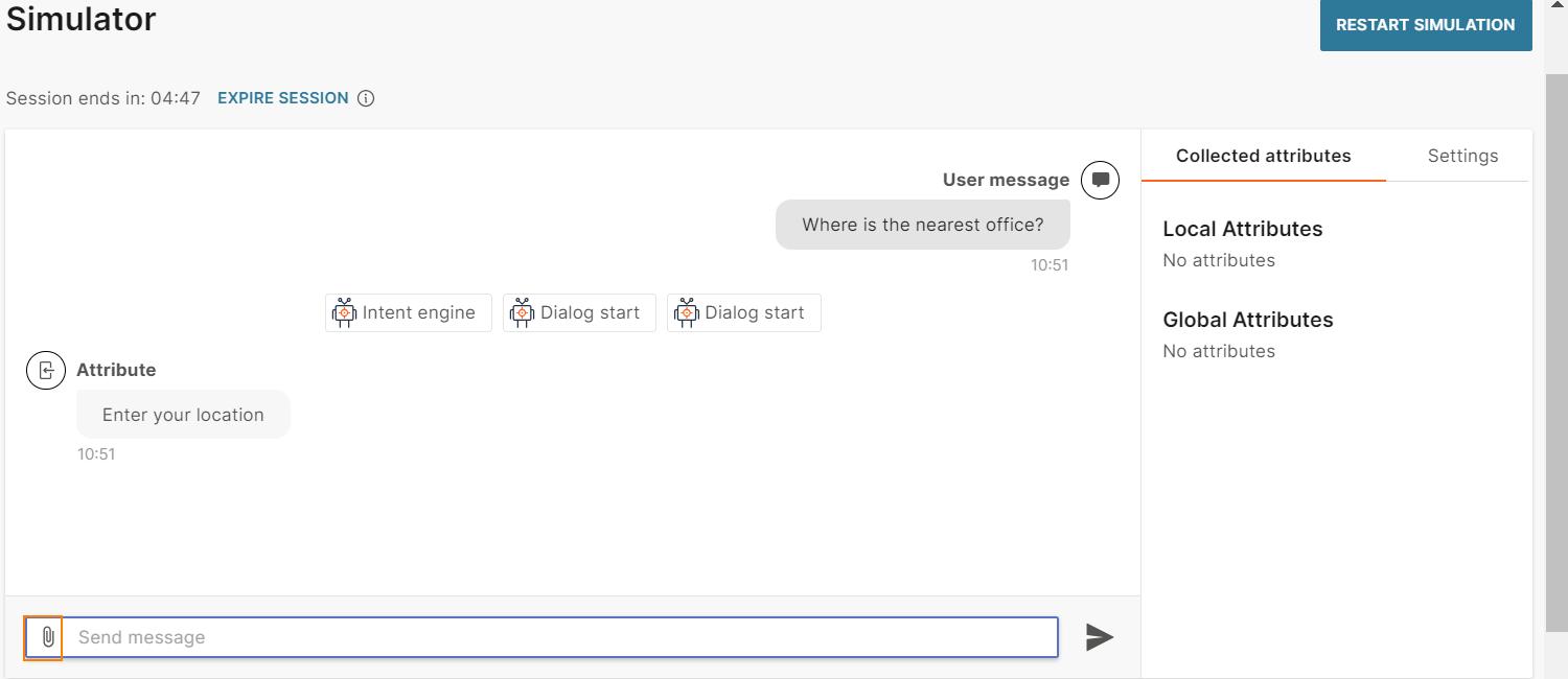 - In the message box, send an initial message to the chatbot to start the simulation.
