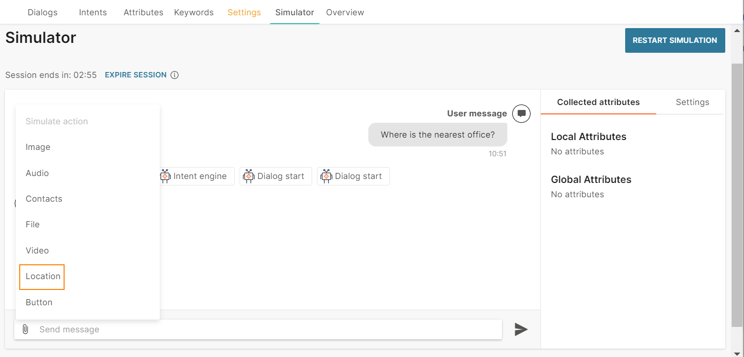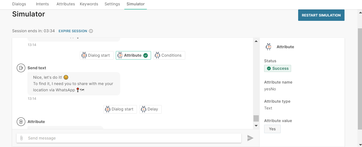 If you want to try other options in the chatbot flow, you can restart the simulation.