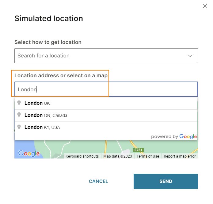 Select a location to simulate how your chatbot communicates with end users based on their geography.