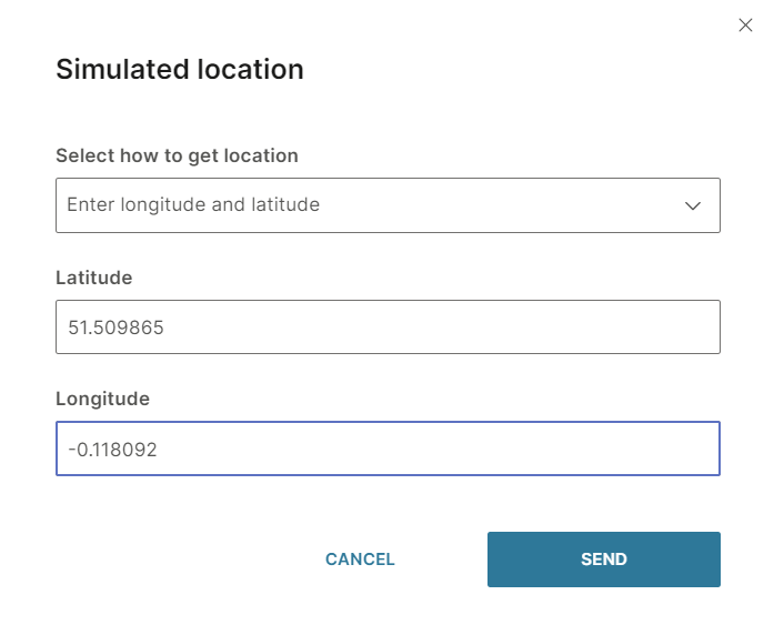 - In the Select how to get location field, choose Enter longitude and latitude.
