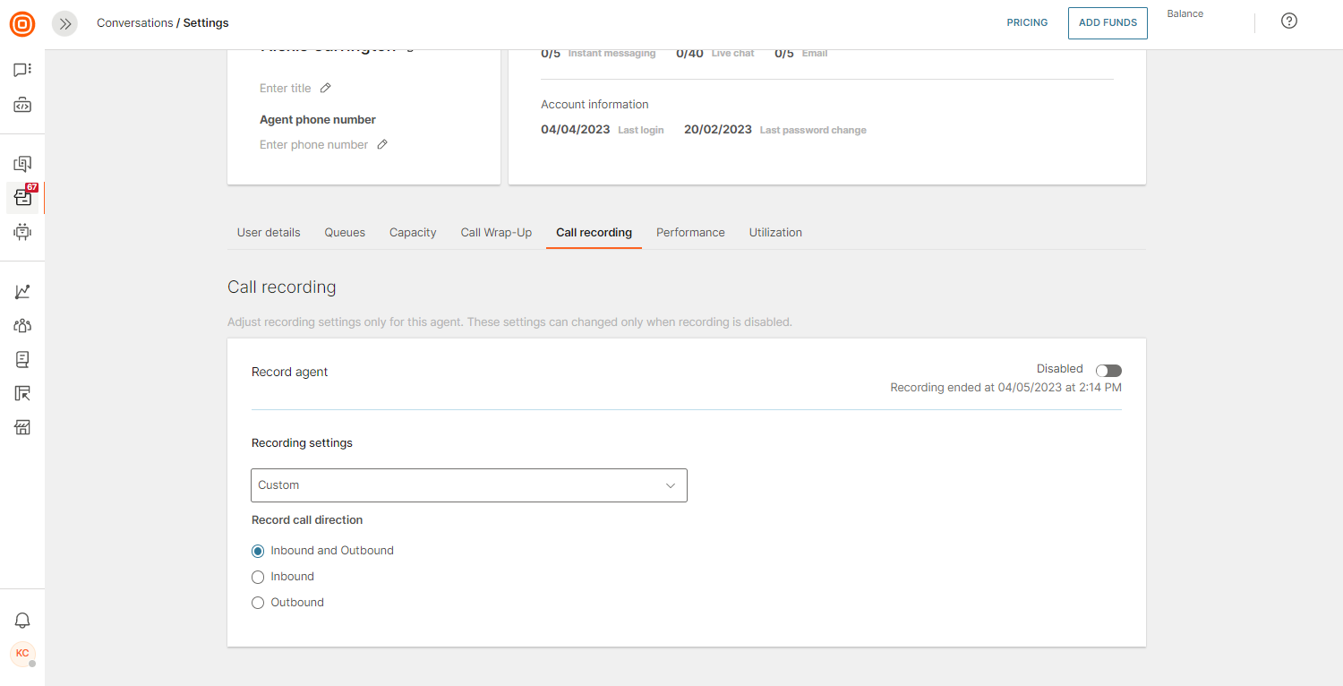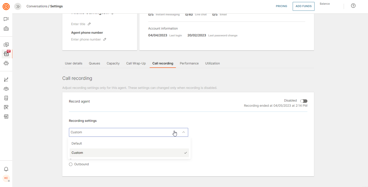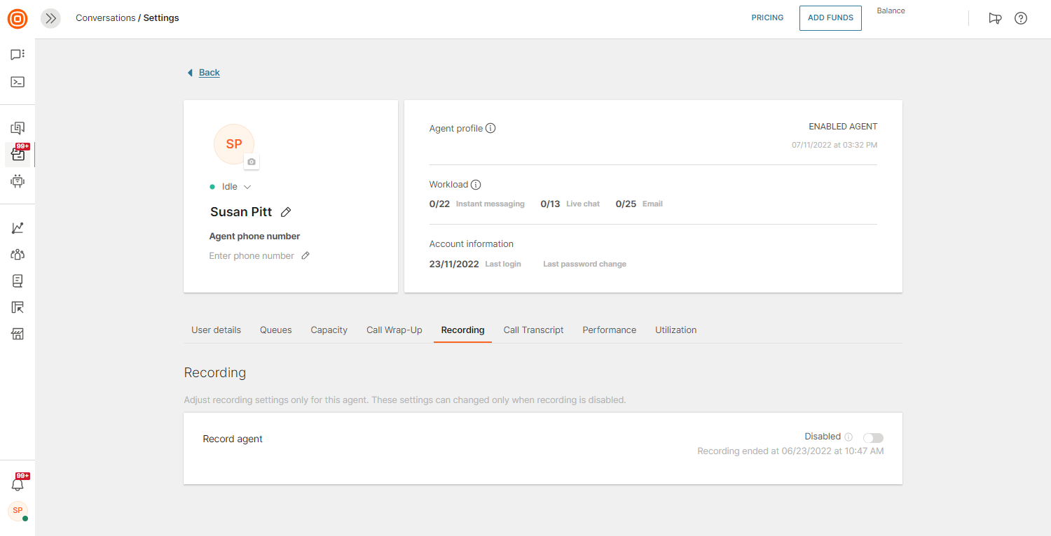 The initial download size of the Conversations web page is approximately 11 MB, which means the first load may be slow if bandwidth is limited. To ensure smooth and uninterrupted use of the Conversations web application, a minimum bandwidth of 5 Mbps is recommended for agents.