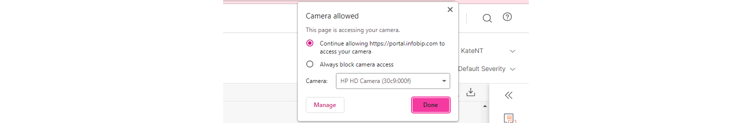When an agent initiates or receives the call for the first time, they will be prompted (by a browser pop-up notification) to allow Conversations access to the device’s microphone and/or camera. If the pop-ups are blocked, you will have to manually enable these settings.