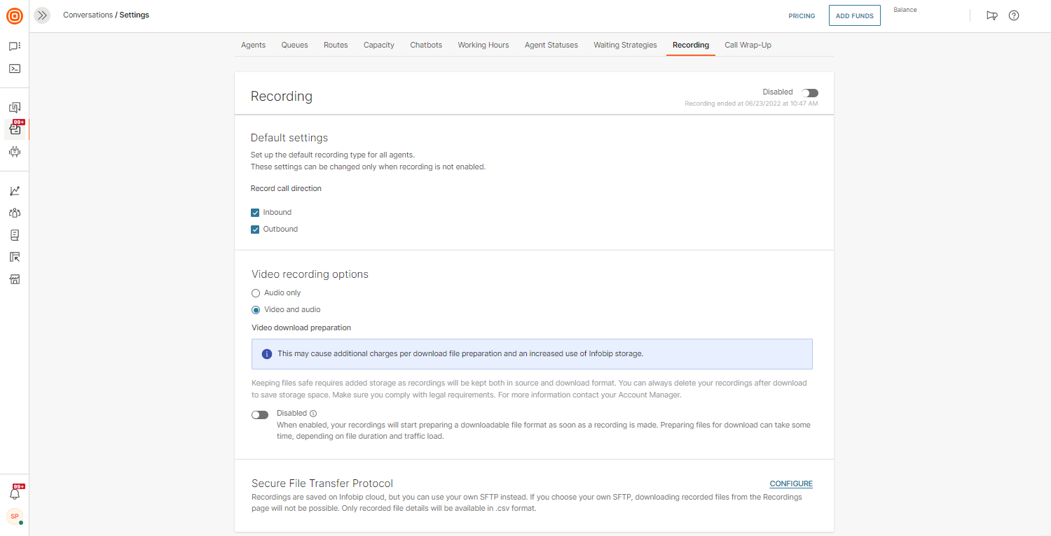 Calls in Conversations are relayed to Infobip data centers. To minimize latency, use the nearest data center that matches your agents' physical location.