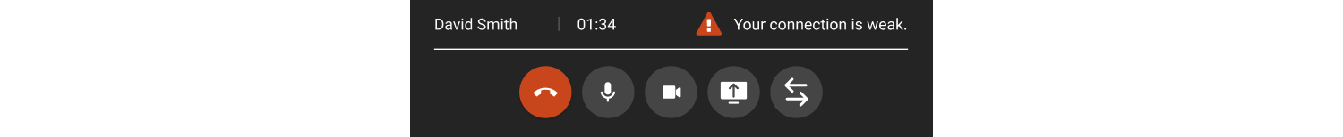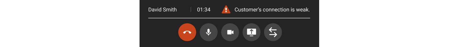 When Internet issues are detected, agents get a message indicating this inside the call modal. These issues are visible to the agent and they will see this message: Your connection is weak.