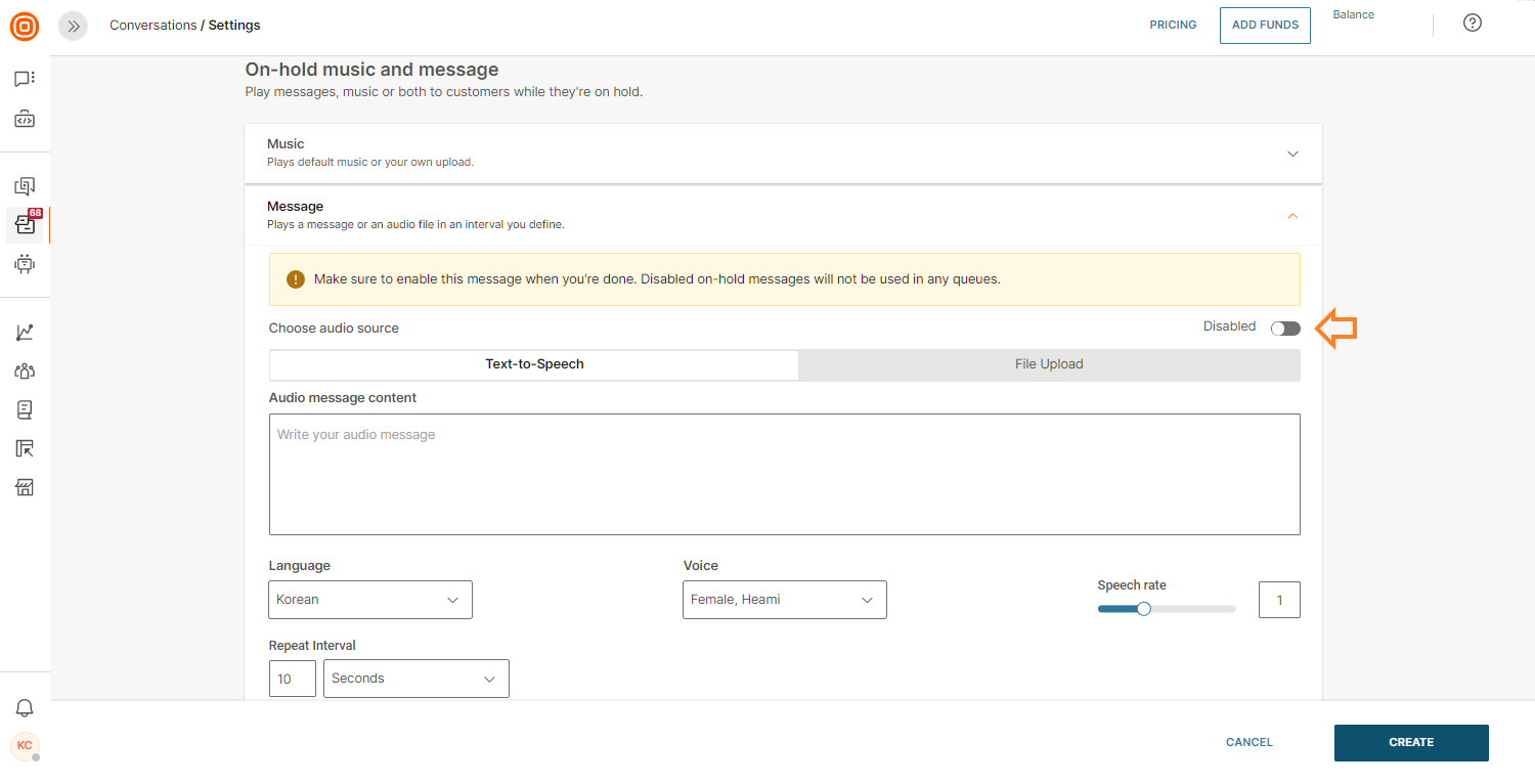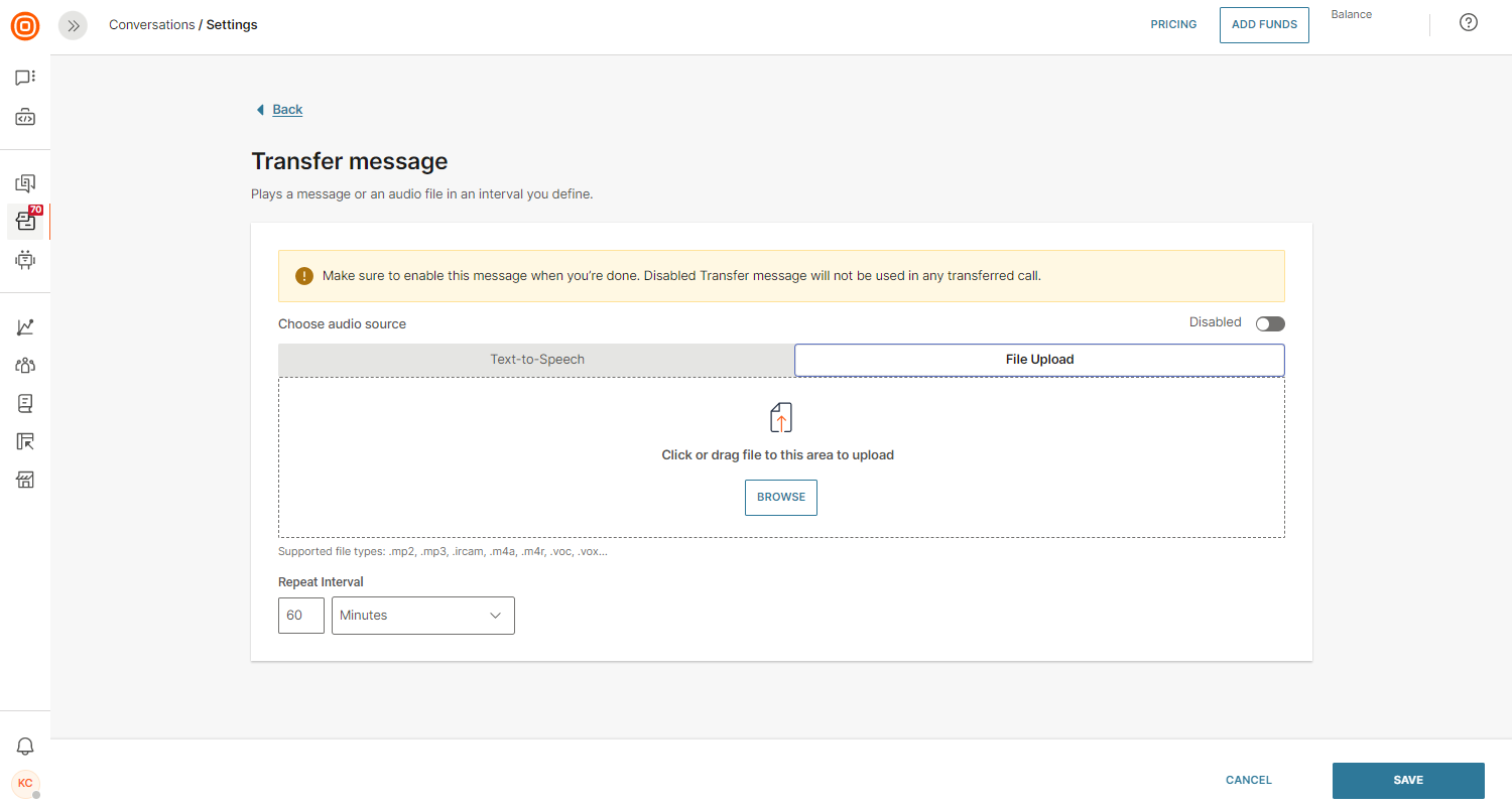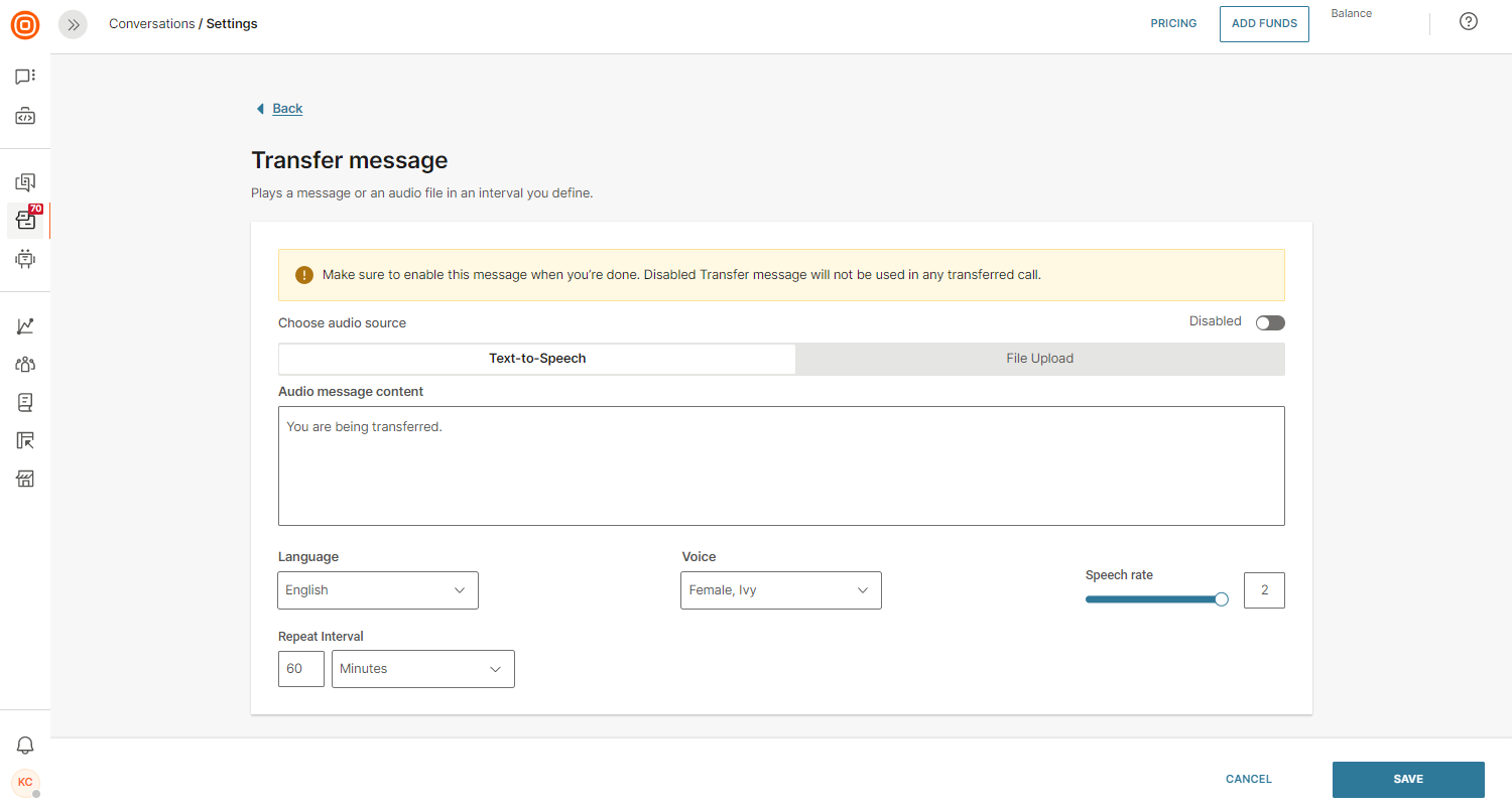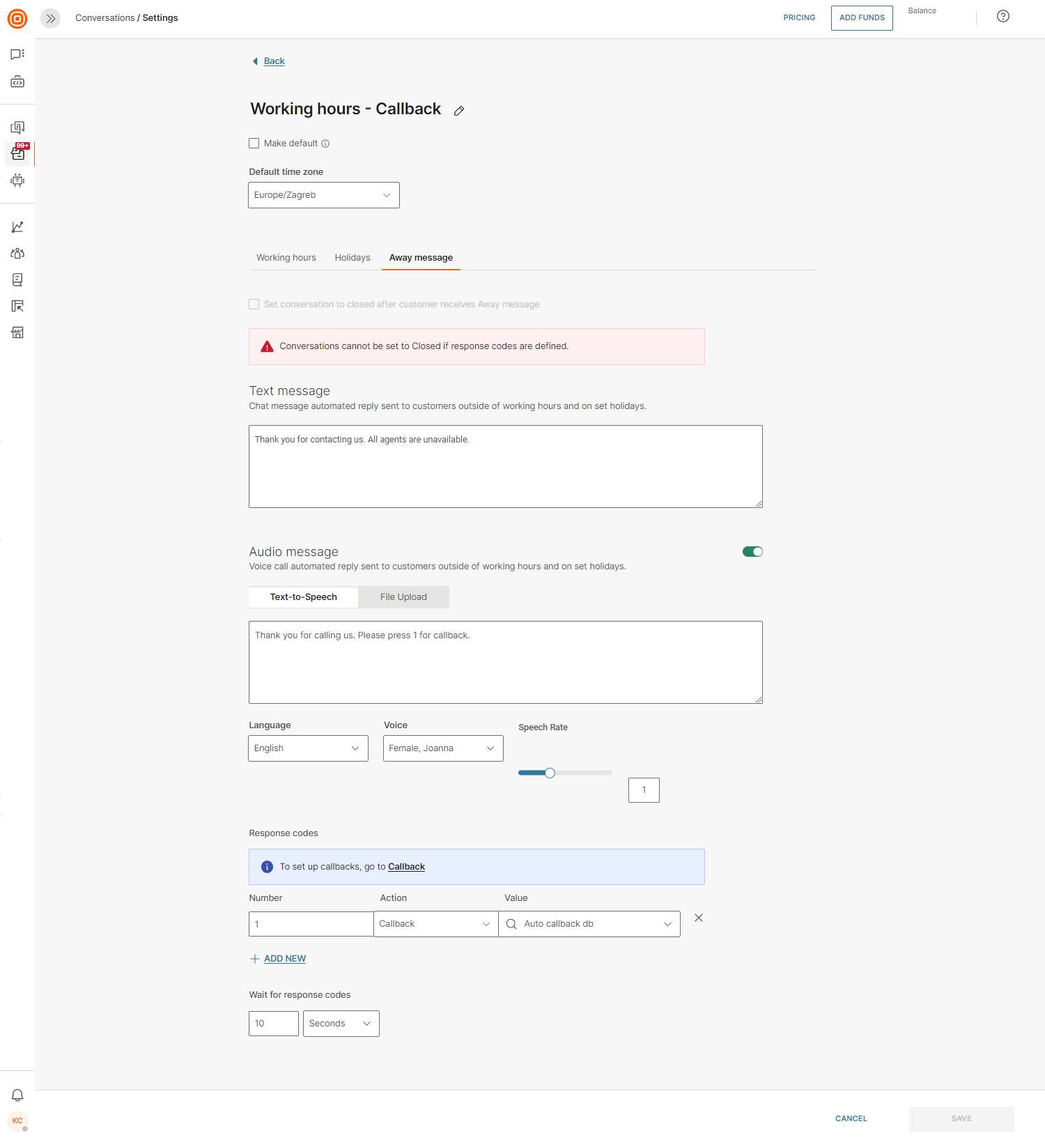 - Configure a Voice number (follow the guide under Set up calls) for Conversations AND/OR