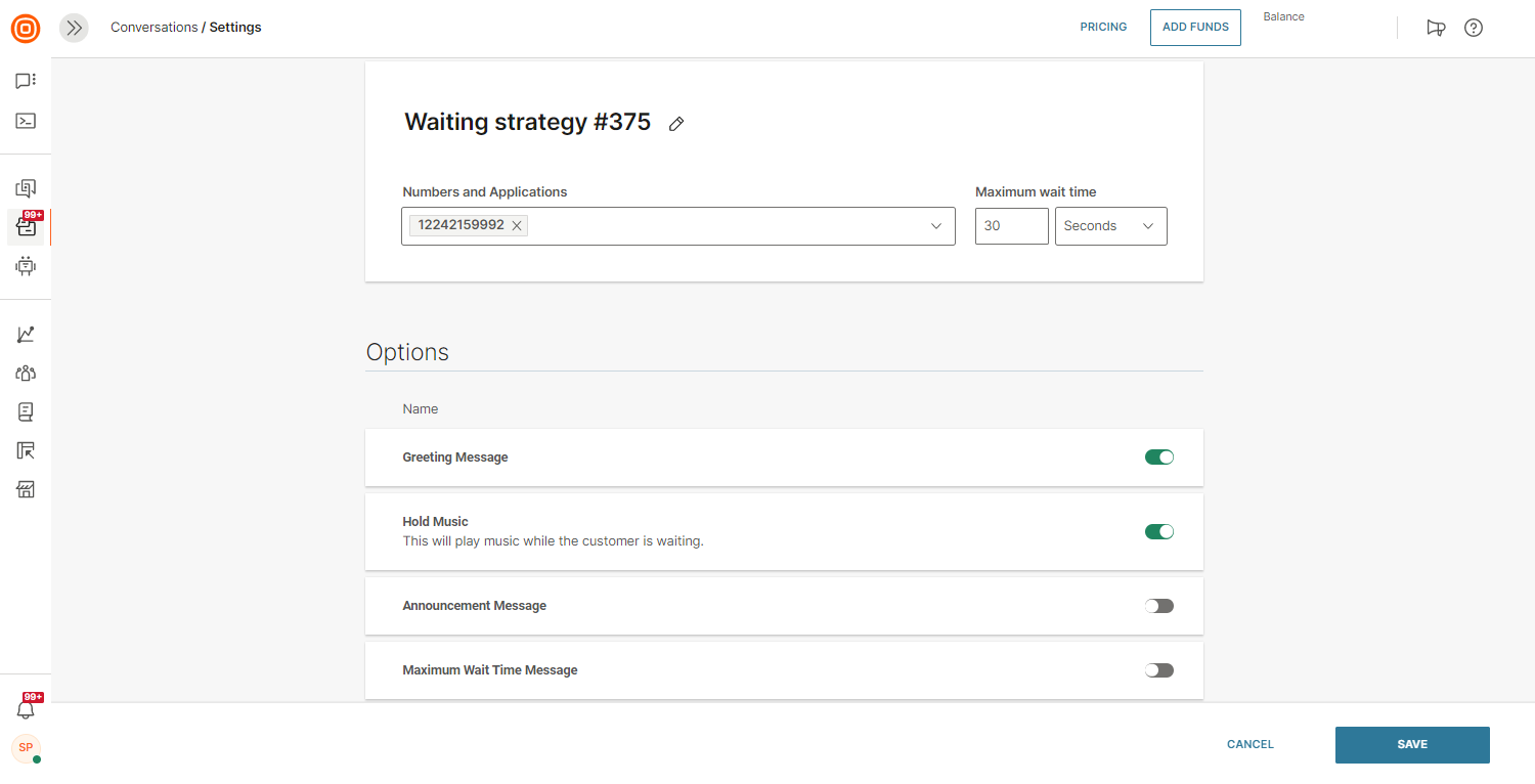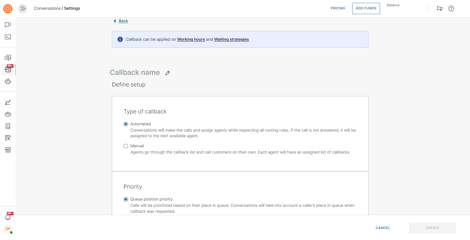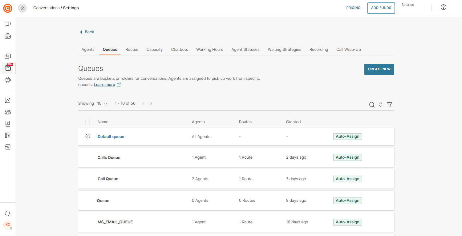 - Complete standard setup - Configure queue settings such as agent assignment, waiting strategy, working hours, and other relevant features.