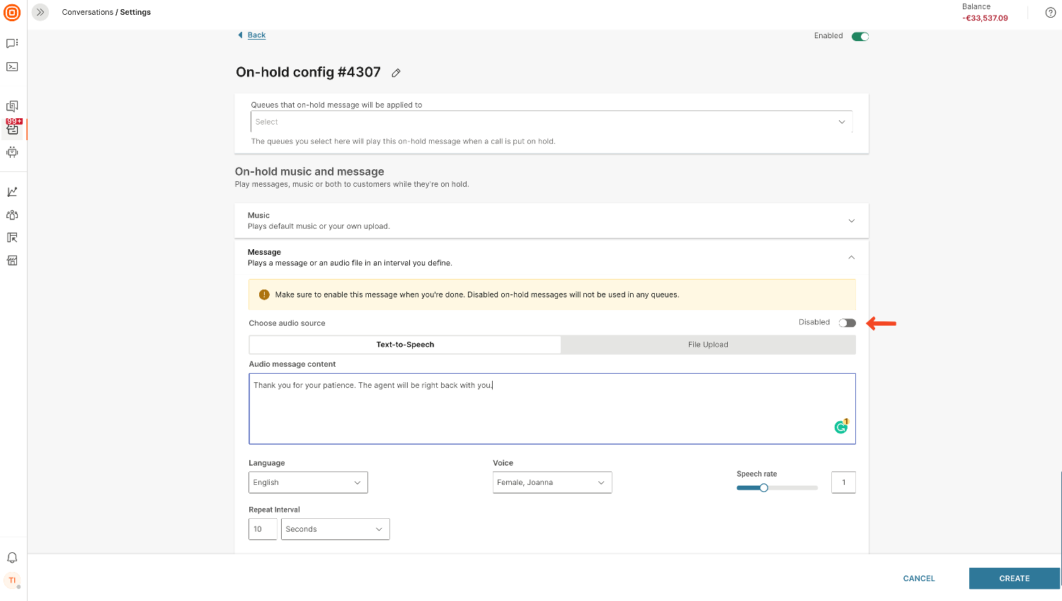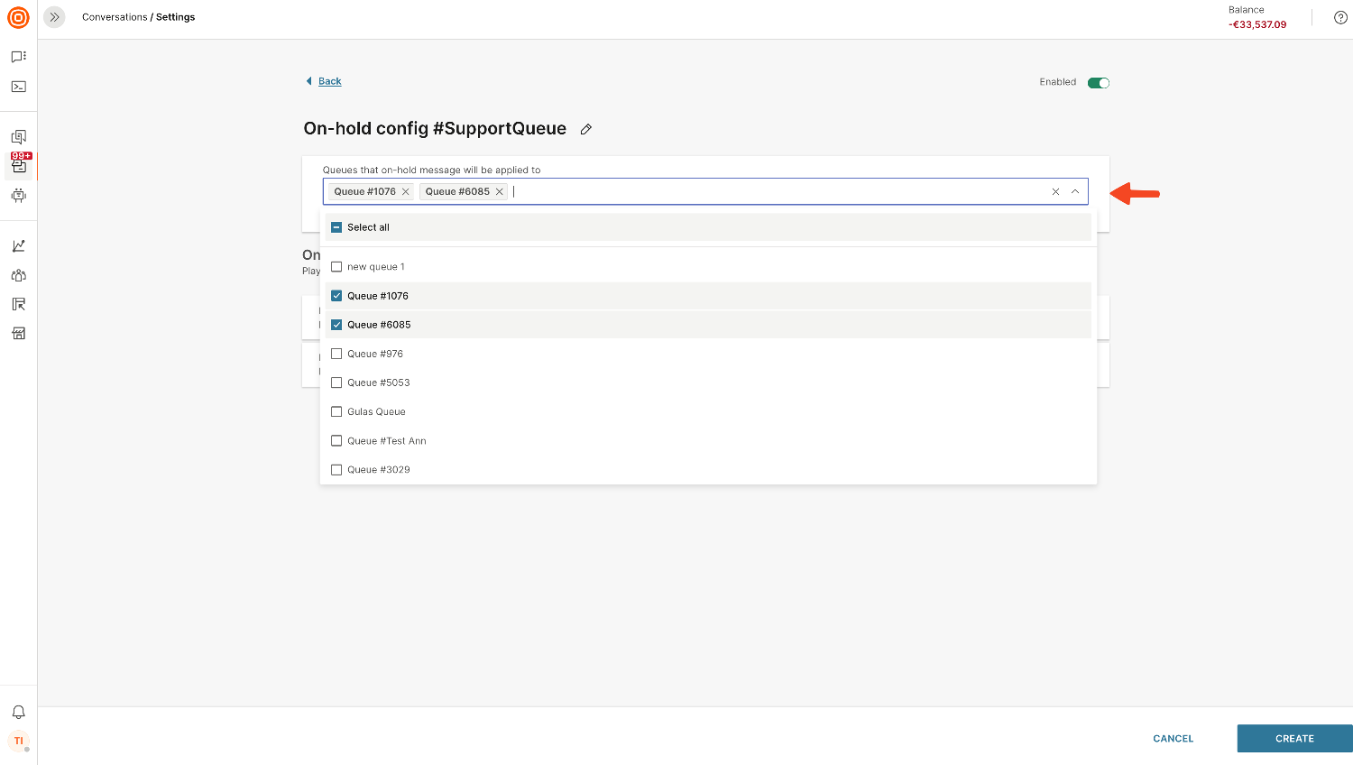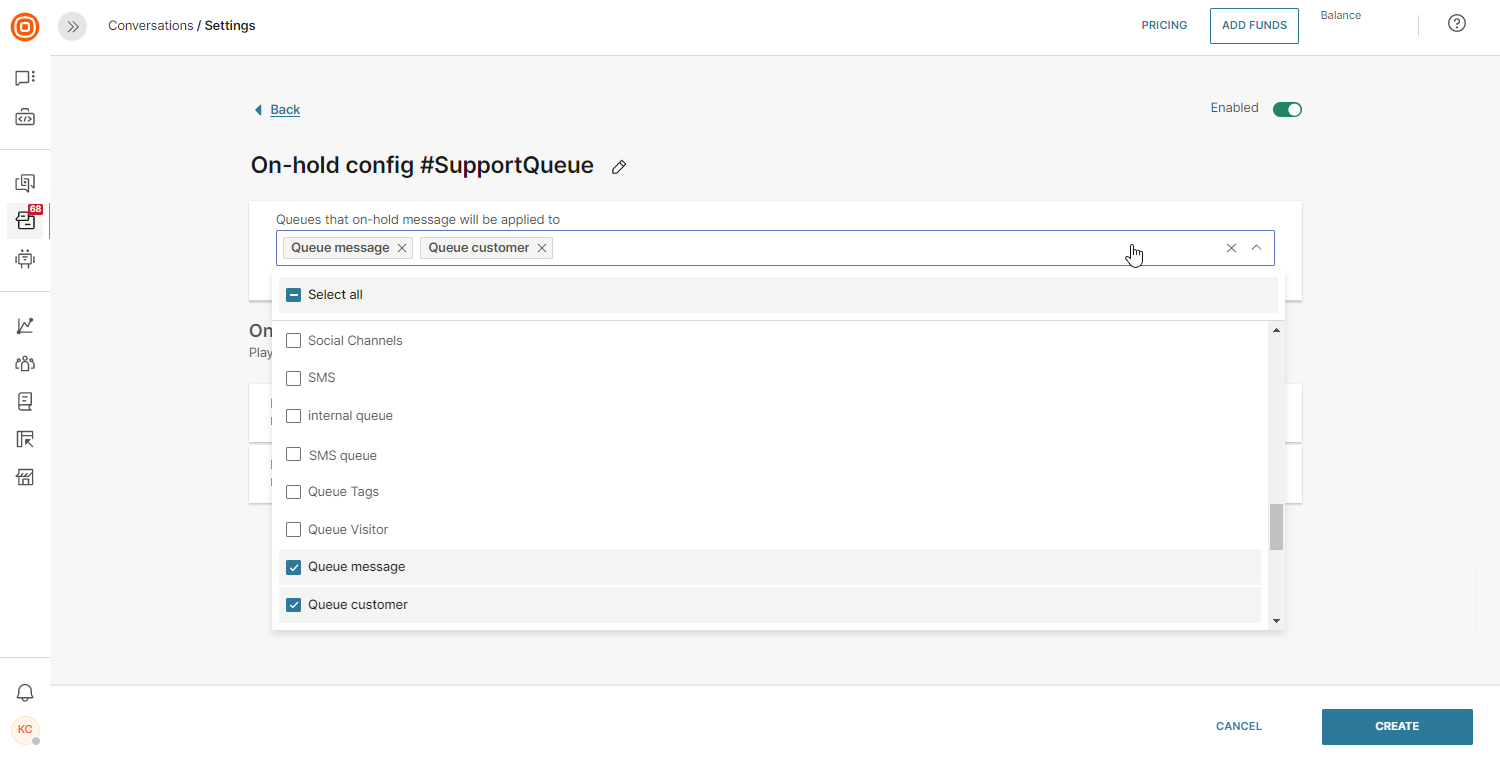 - Complete standard setup - Configure queue settings such as agent assignment, waiting strategy, working hours, and other relevant features.