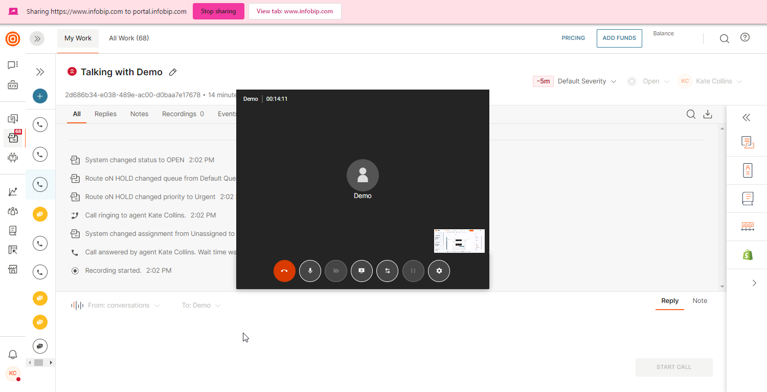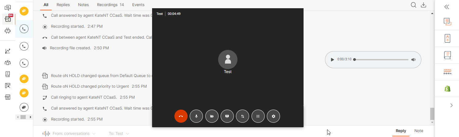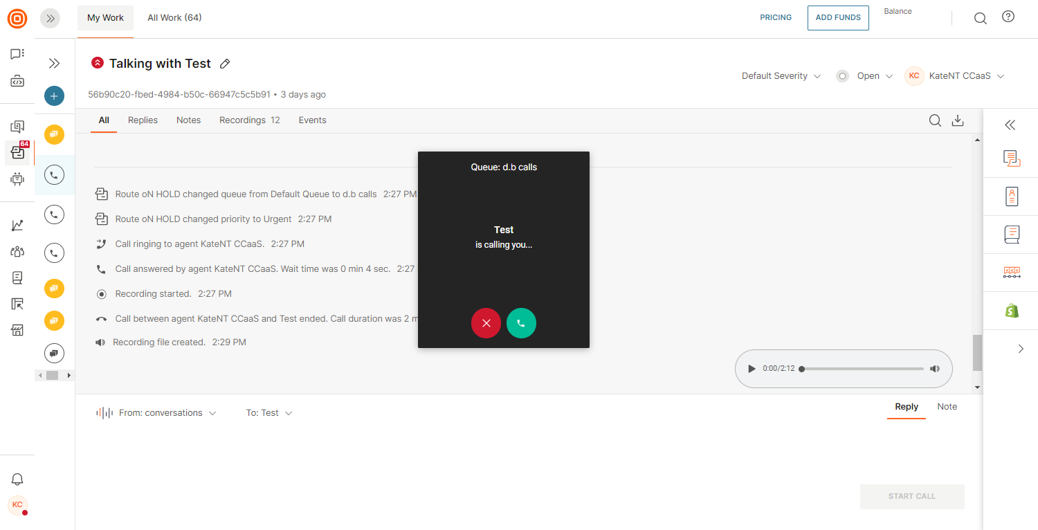 - When the customer taps the call button, a call pop-up appears and you can take the call directly.