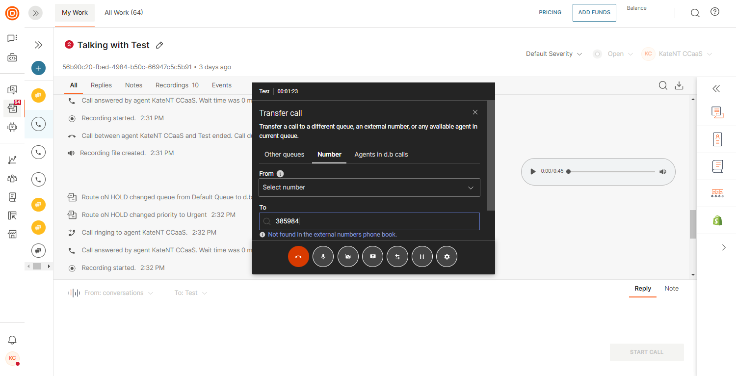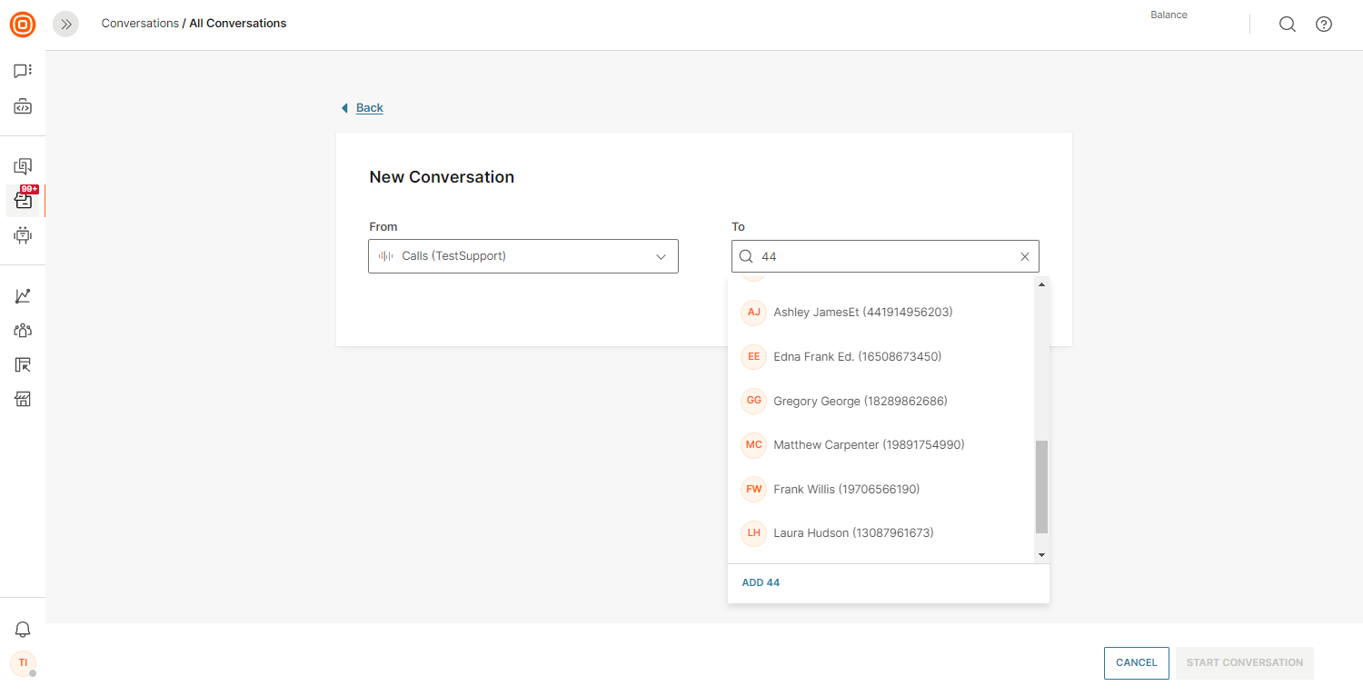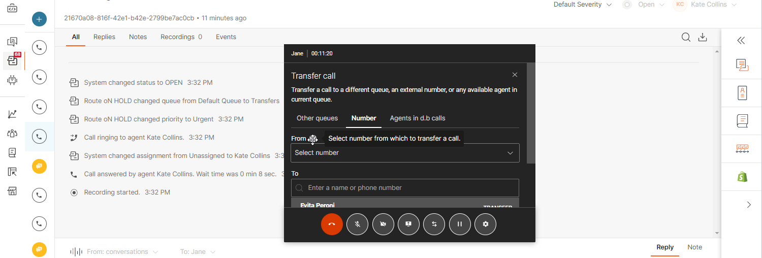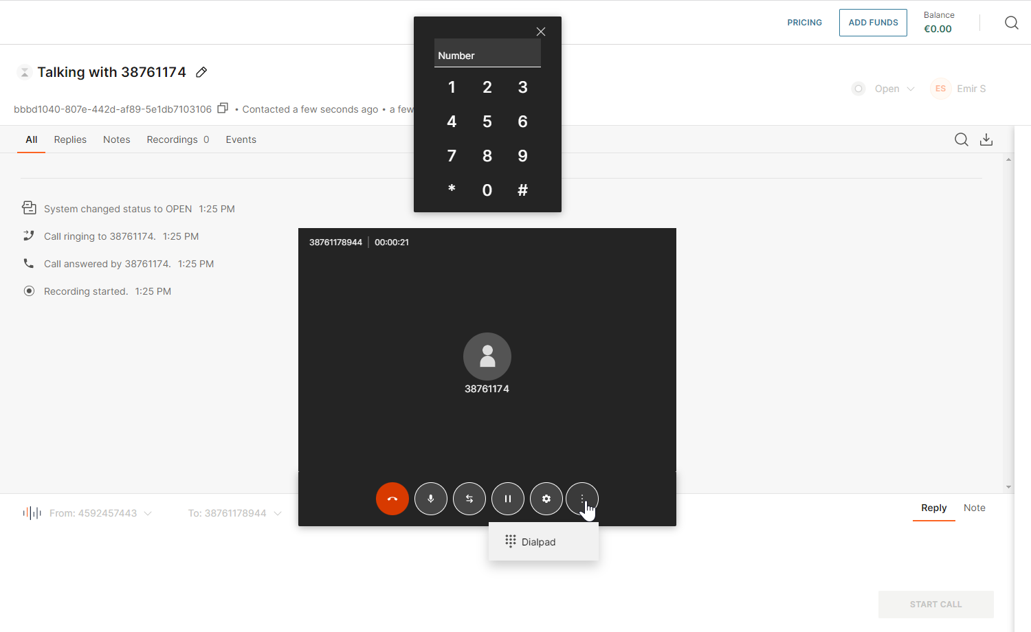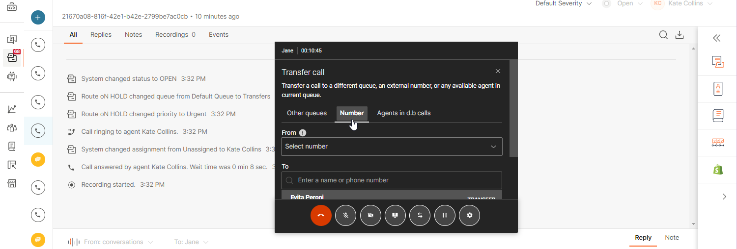 - In the To field, specify the contact you want to call. You can either select an existing contact from the drop-down menu or add a new number.