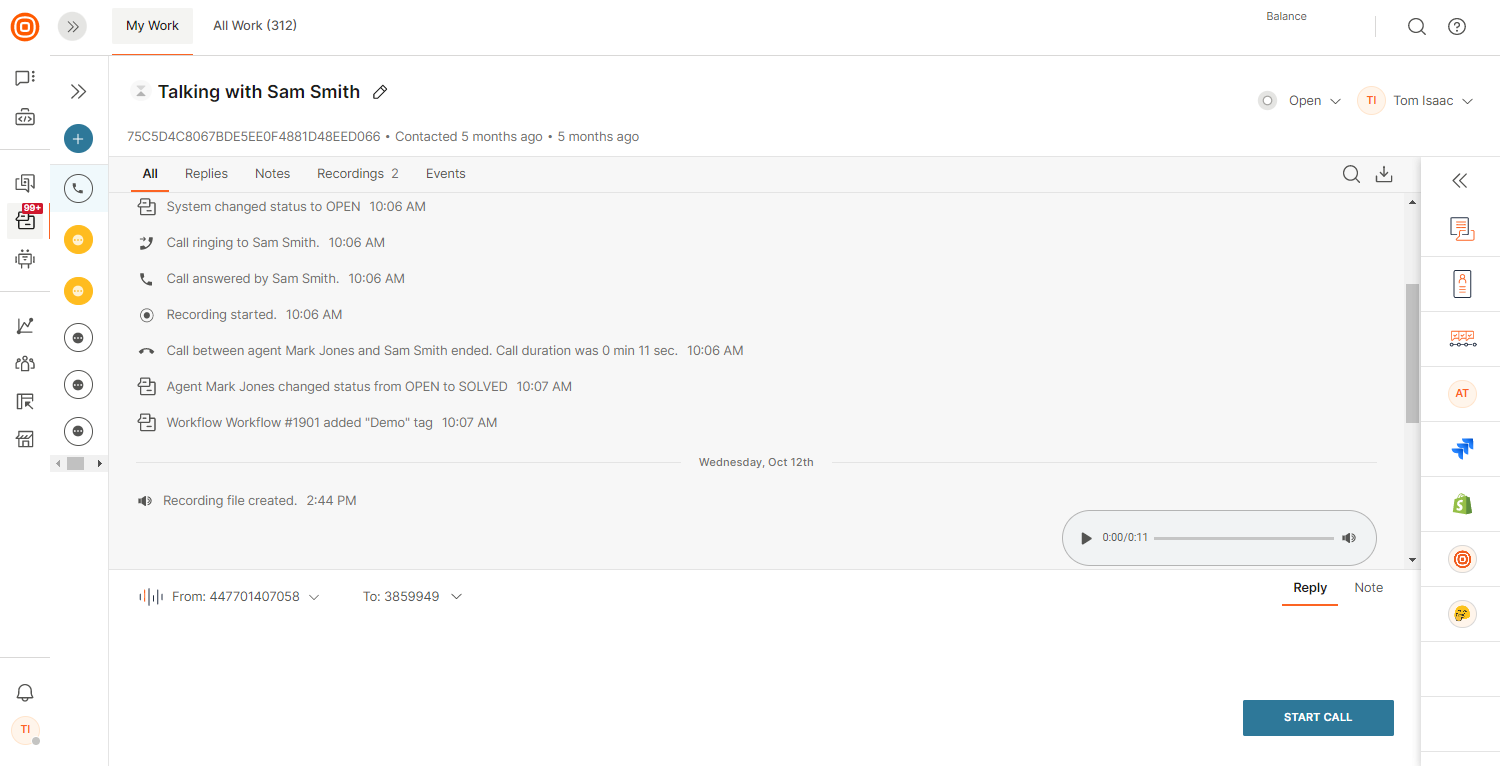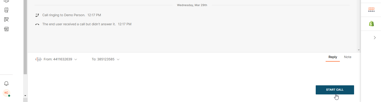 After sending the call request, you will see the customer's response when they reply. If the reply is Yes, the Call button becomes available, allowing you to place the call.