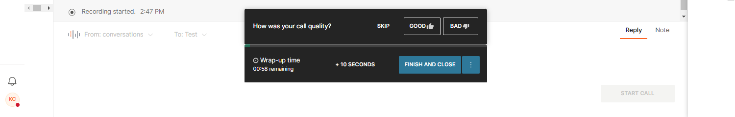 If the call is a WebRTC call, then the system can detect if there are any issues on the customer's side. If this happens, the agent will get the following message inside the call modal: Customer’s connection is weak.