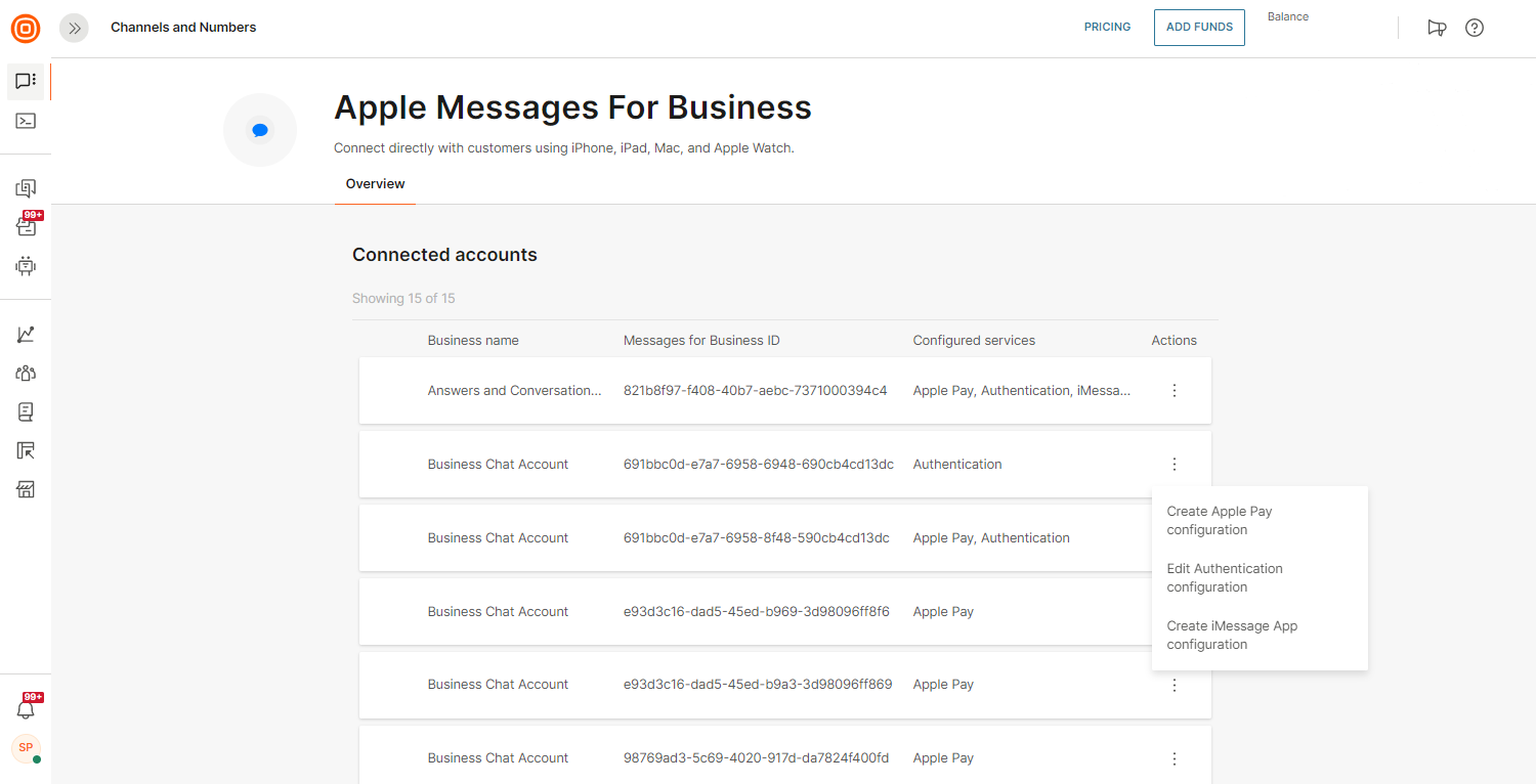 Apple Messages for Business channel helps businesses connect with customers directly from Maps, Siri, and Safari on any Apple device. This channel allows you to reach over 1.65 billion iOS devices worldwide.