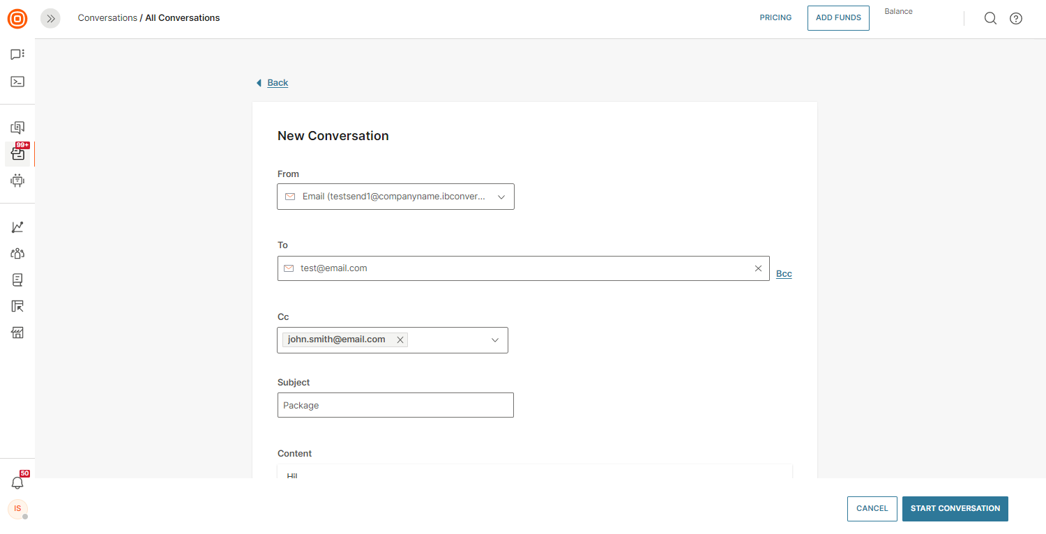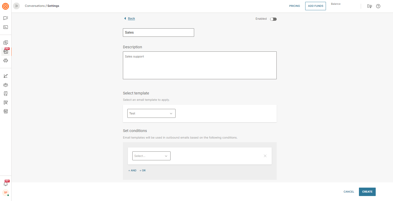 - To create and manage multiple conditions, go to Conversations → Settings → Channels → Email → Conditions.