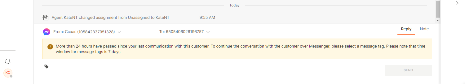 Additionally, if the conversation is not assigned to you, the merge option will be disabled.
