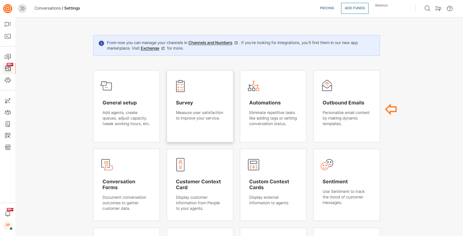 To access this feature, go to Conversations → Settings → Channels → Email.