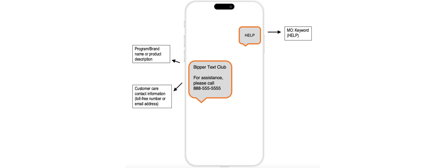Message senders must send a HELP message after consumers text the HELP keyword. Short codes must reply with the program’s name and additional contact information for consumer help.