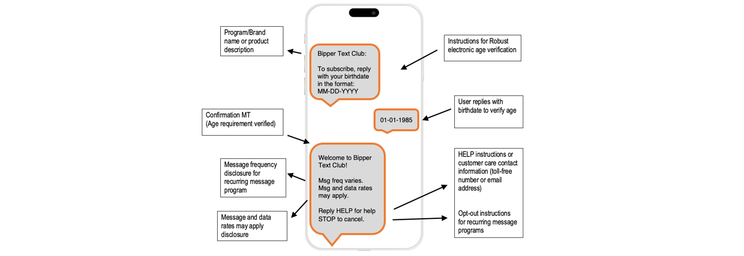 Messaging content for controlled substances or for distribution of adult content might be subject to additional carrier review. This type of messaging should include robust age verification (for example, electronic confirmation of age and identity).