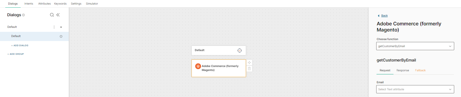 For example, the getCustomerByEmail function returns the customer object from Adobe Commerce that contains all of the information stored there. If you'd like to store the customer's first name in an Answers attribute, refer to it as:
