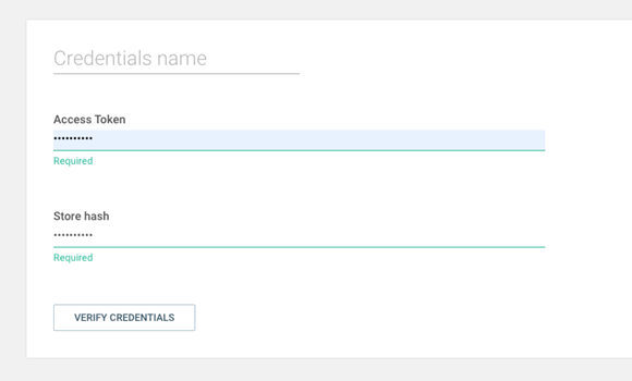 - Add the Access Token & Store hash obtained when you created the API account. The hash is embedded in the store URL.