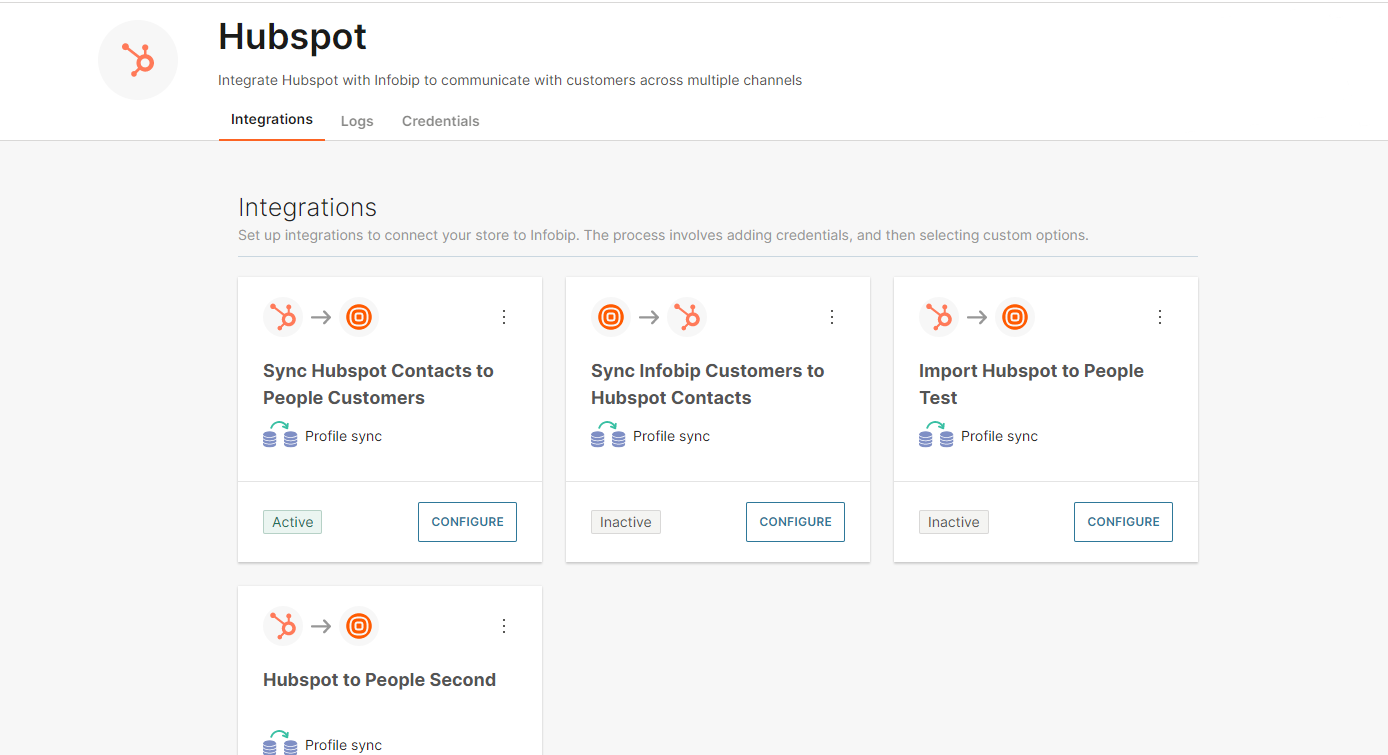The HubSpot for People integration allows you to synchronize your HubSpot customer data with People, our customer data platform, and this lets you use that data with Infobip solutions like Moments, Broadcast, and more.