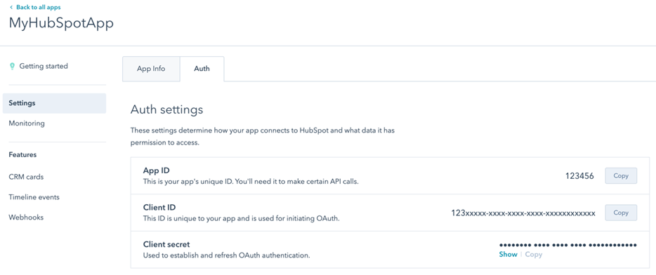 - Enter the Client ID and Client secret you created in HubSpot.