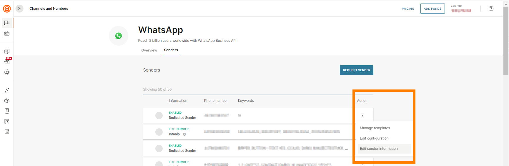 - A WhatsApp sender. To get a dedicated sender, use the instructions for request sender registration (opens in a new tab).