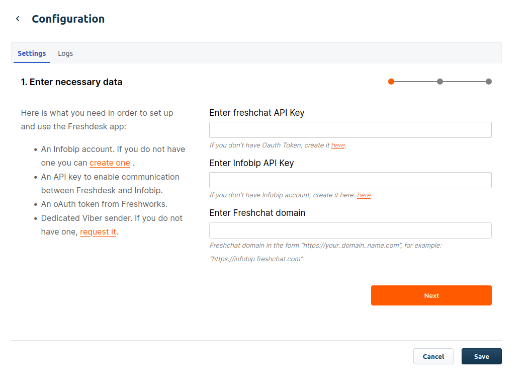 - Infobip API key to enable communication between Freshdesk and Infobip