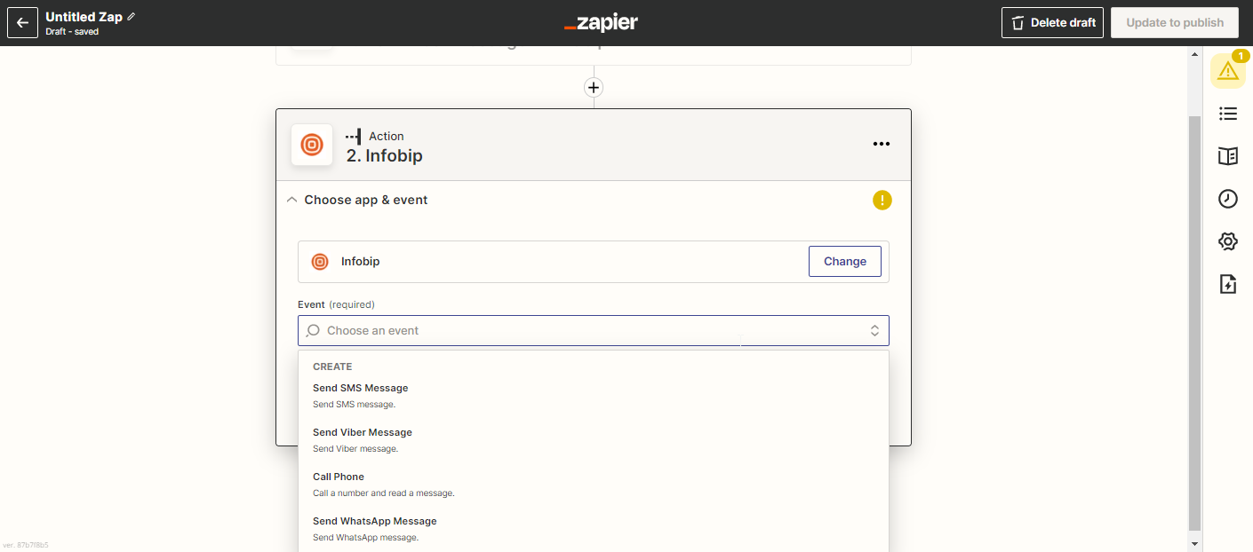 NOTE: To see the available triggers and actions, log into your Infobip account and search for "Infobip." Unless you are given other instructions, always use the latest version of the Infobip integration.