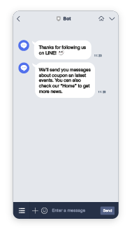 - For two-way communication, use LINE Official Account two-way service to provide customer support or send engagement campaigns. This service is available on Moments, Answers, Conversations, and Conversations API.