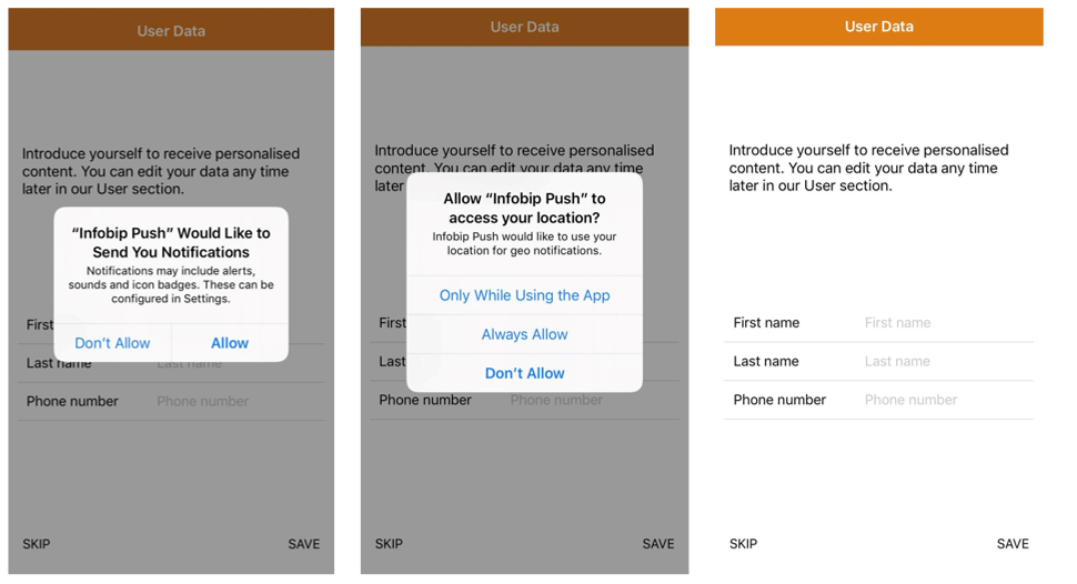 Use the Demo application to learn how to use Infobip mobile messaging products. The app helps you do the following: