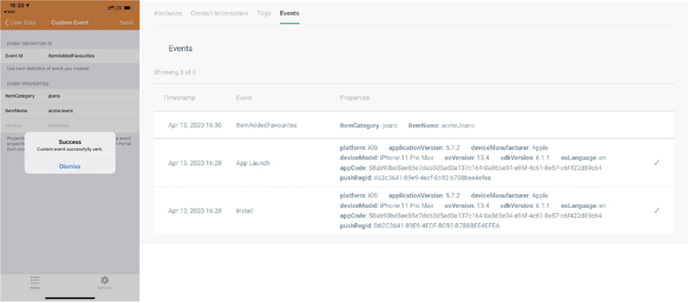 You can also use the demo application to test different events and event-triggered scenarios before implementing it in your production application.