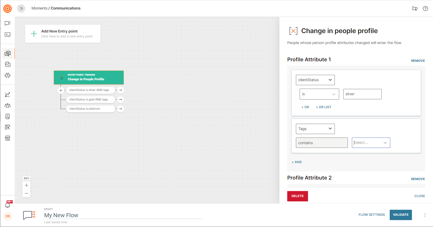 NoteYou can use different combinations of attributes and tags to make sure that the person profile meets the criteria for the flow.