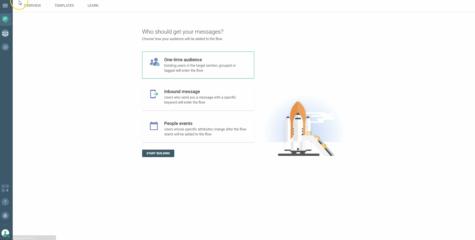 In the entry point, define the audience. Specify the tags and attributes that the person profile needs to have to be included in the flow.