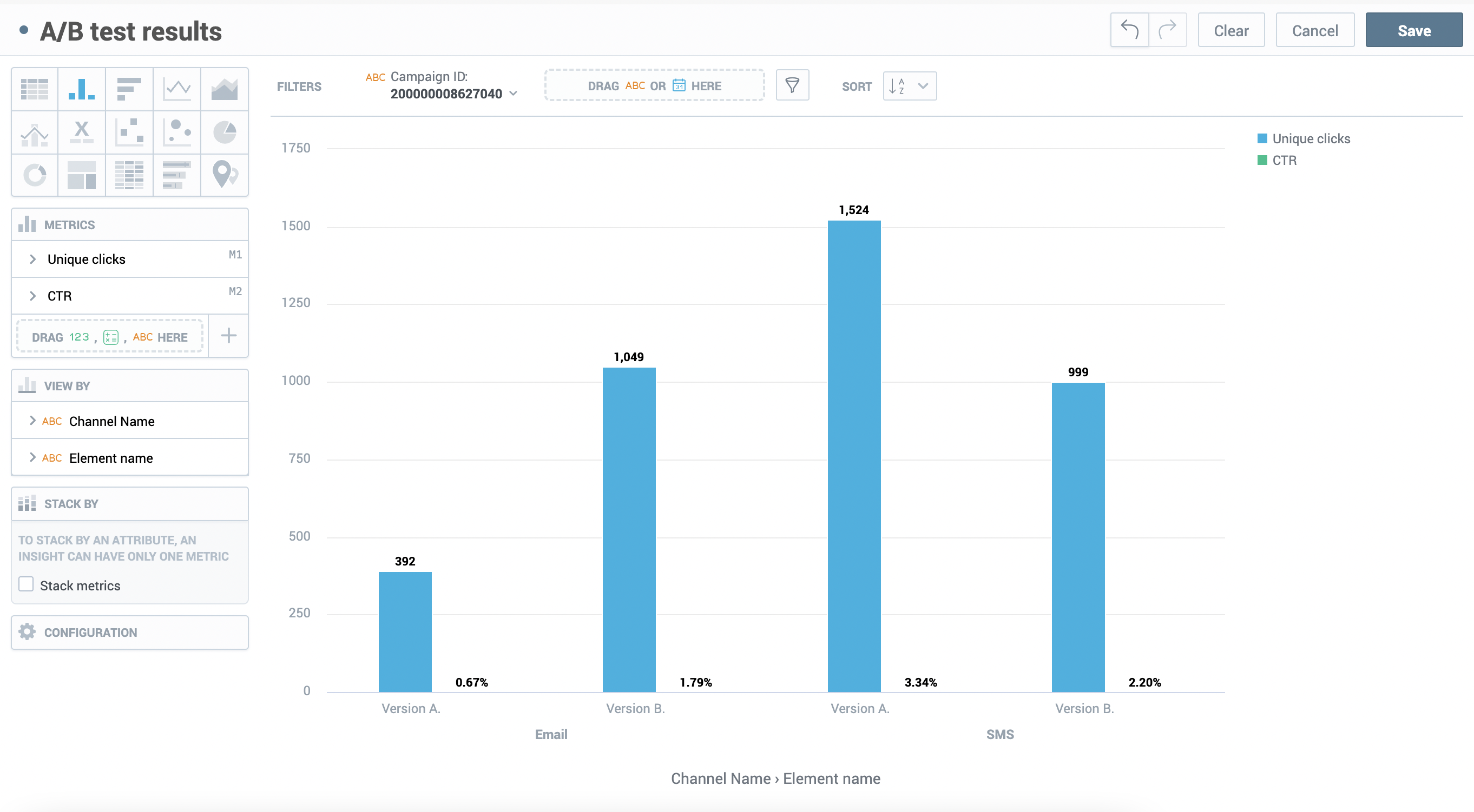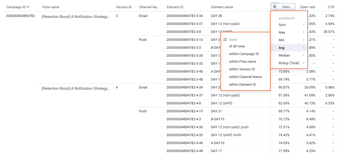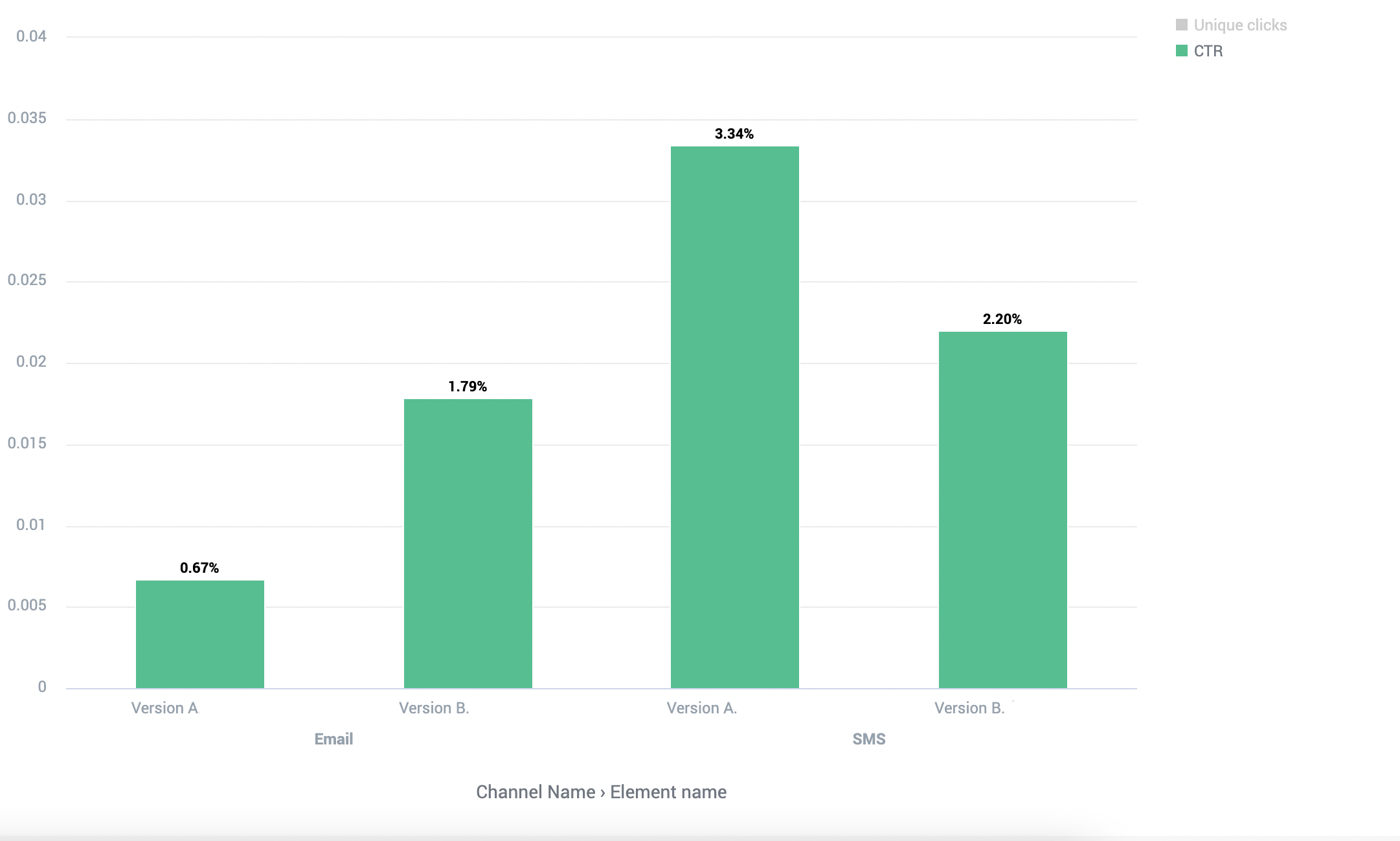 | CTR | Click-through rate (Unique clicks / Messages delivered ratio) |
