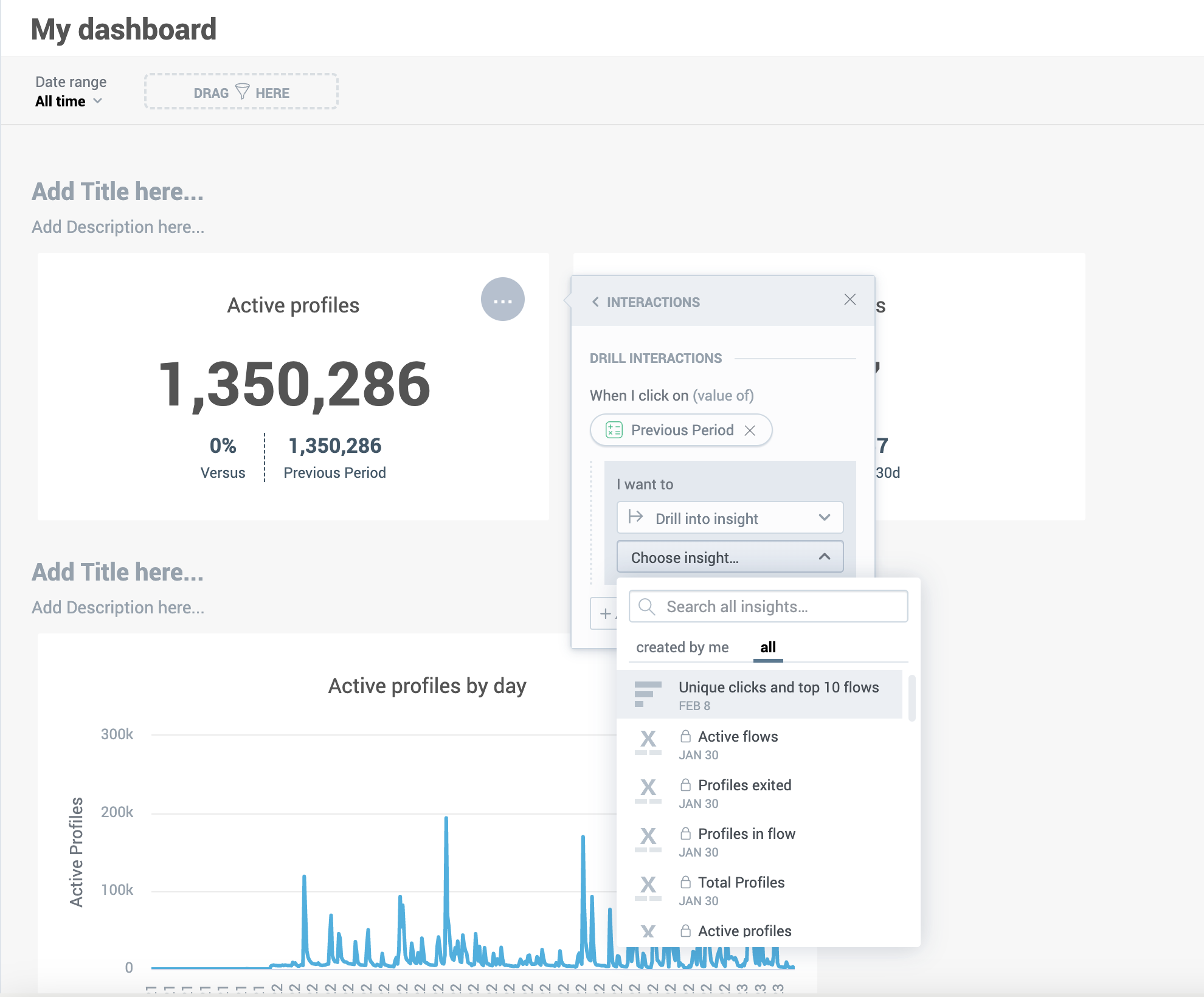 - In the I want to section, choose whether you want to drill into the insight, another dashboard, or a URL.
