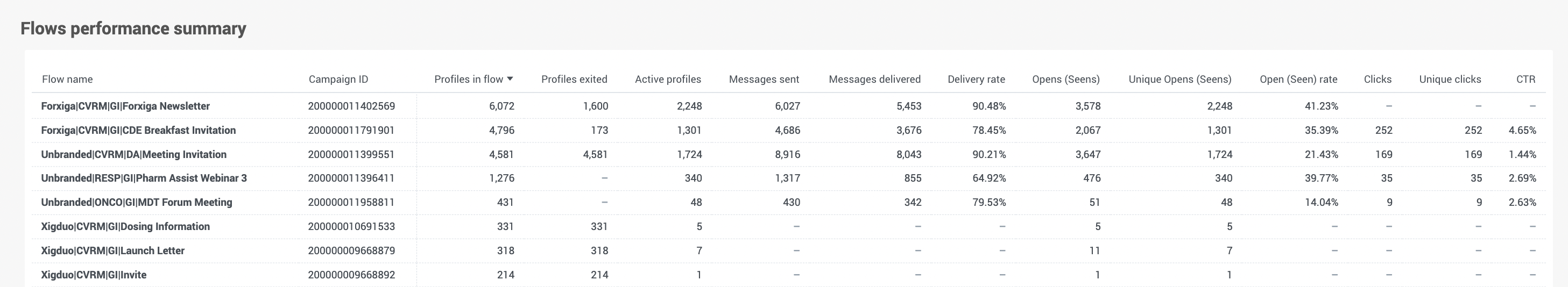 Use the Flow performance summary to get a detailed overview of all flow campaigns in a convenient table view.